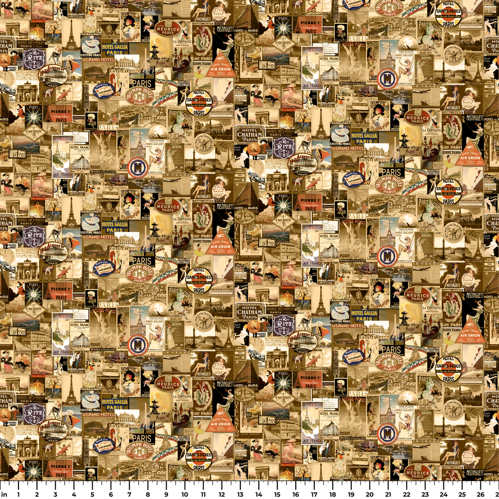 Kate Ward Thacker – Postcards from Paris – Sepia Travel Collage Fabric