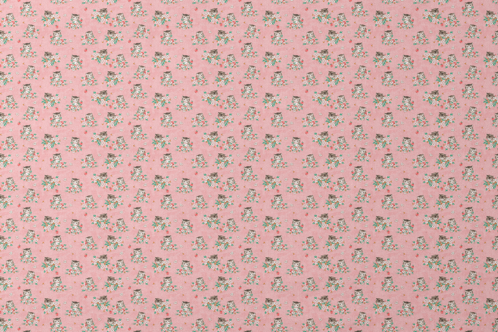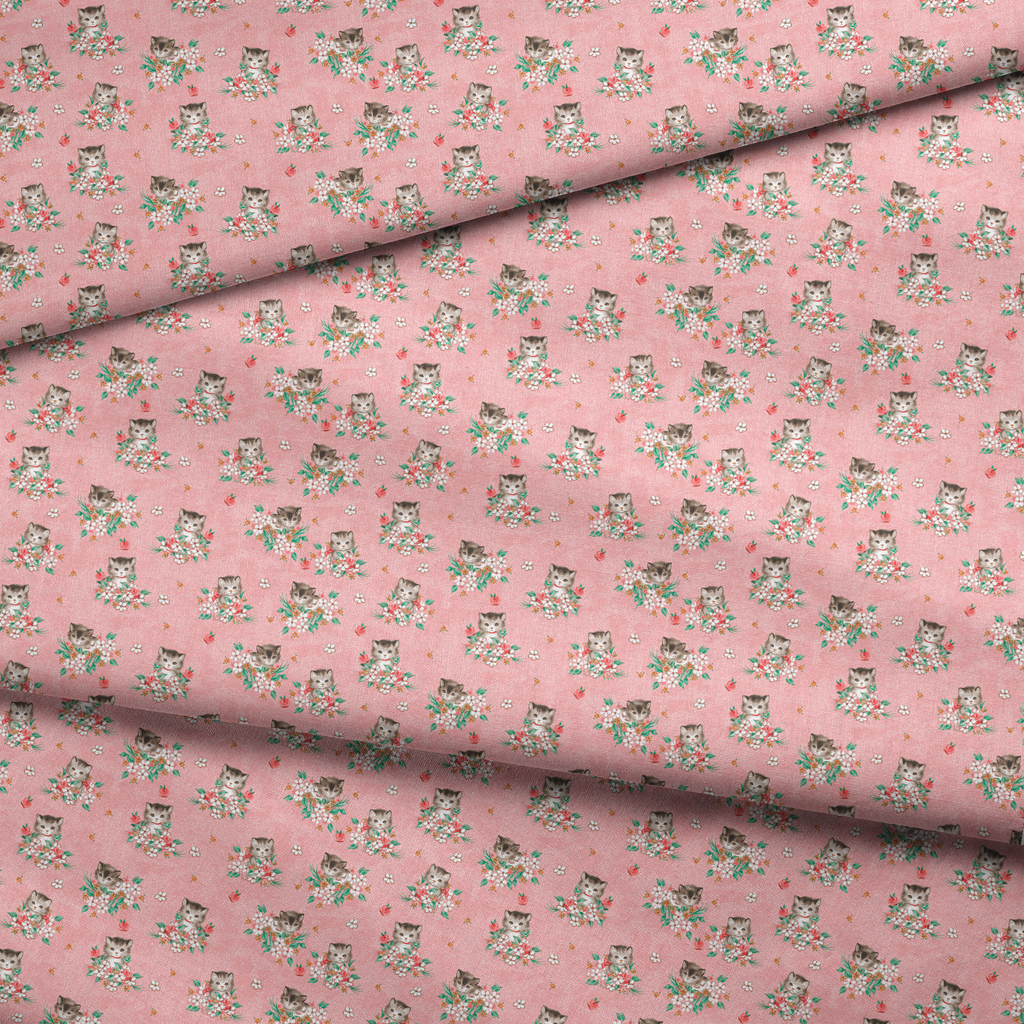 Kitten Bouquet on Pink Fabric
