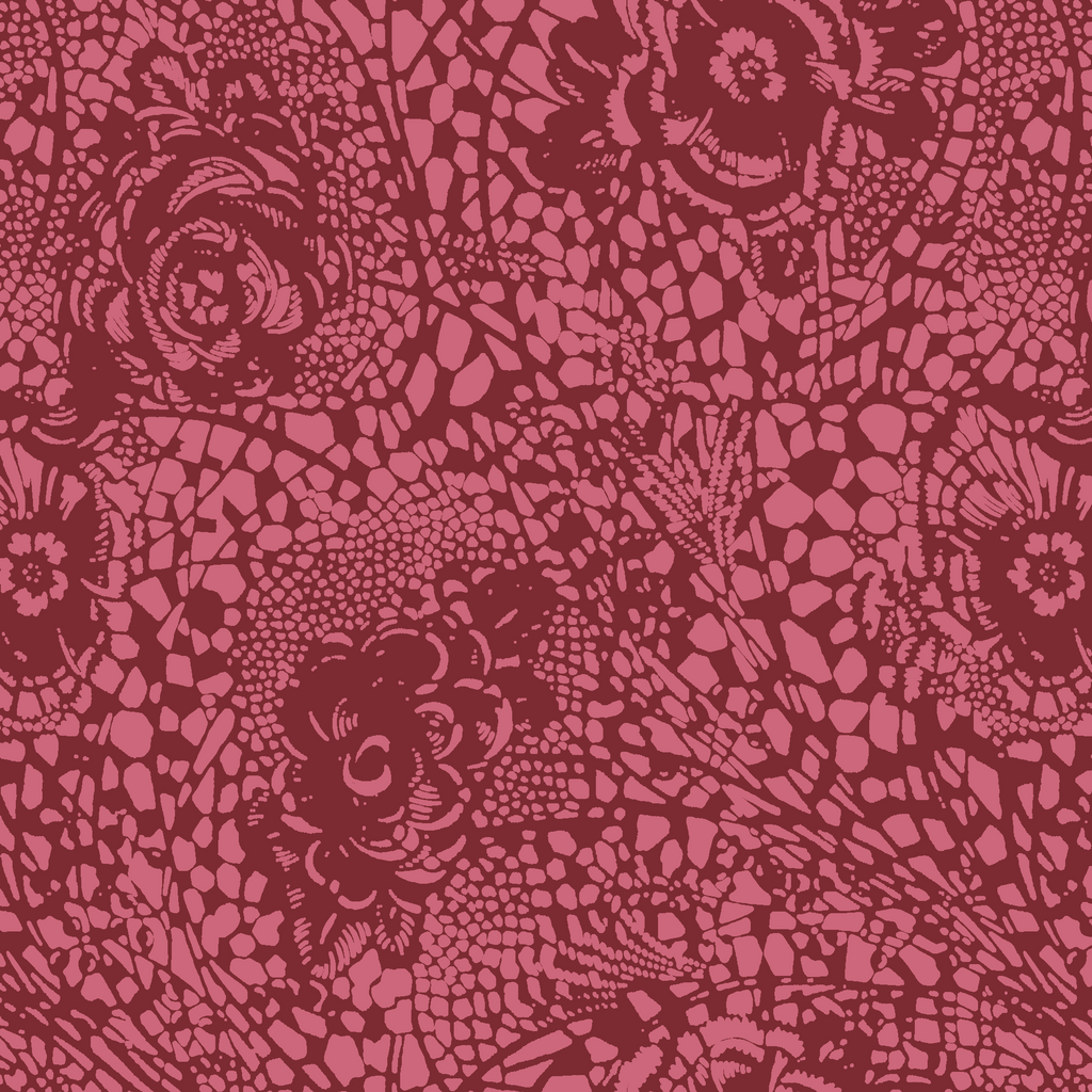 Elegant floral lace pattern in rich burgundy tones with intricate rose designs, creating a romantic, vintage-inspired effect perfect for any space.