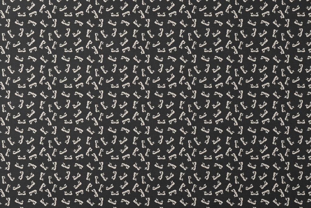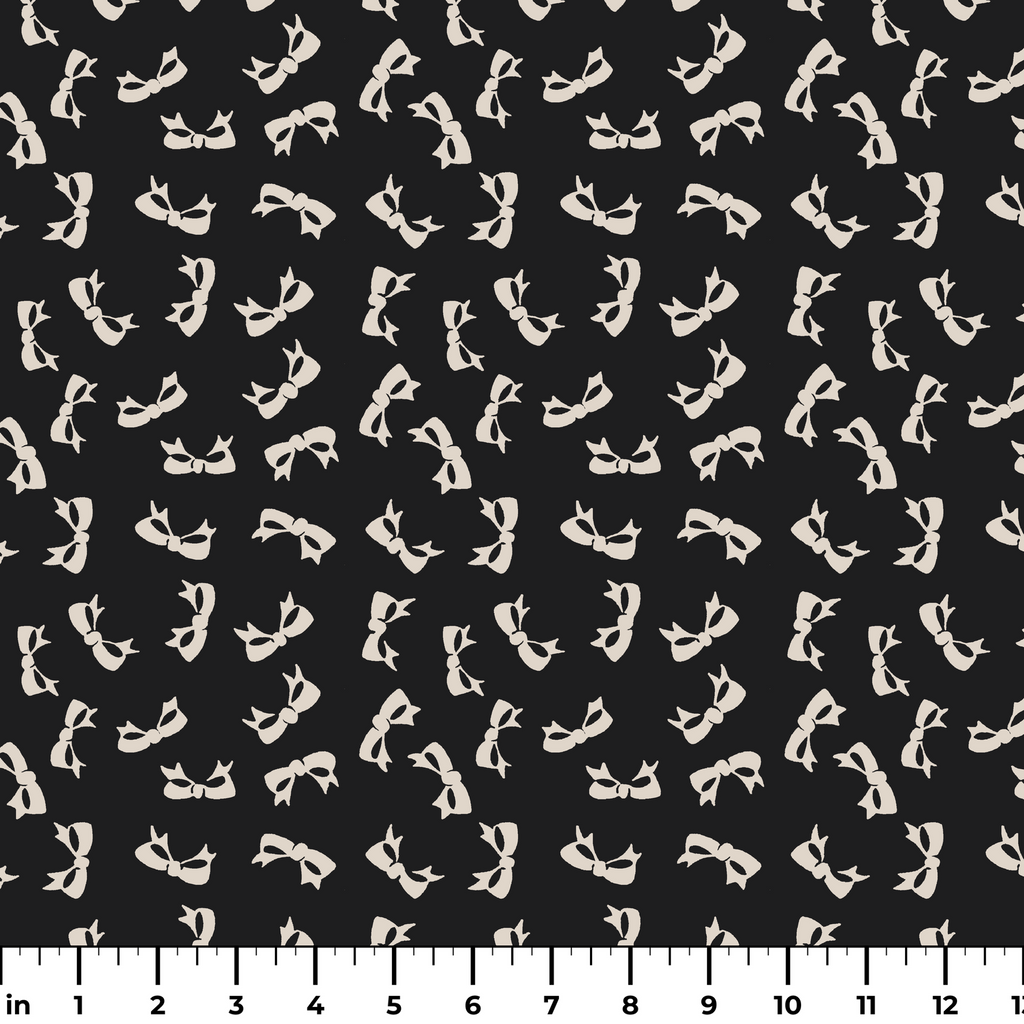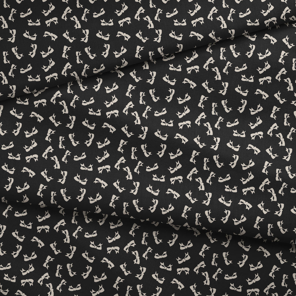 Delicate beige bows scattered across a rich inky black background create a timeless, feminine pattern. Perfect for elegant accessories or vintage-inspired fashion pieces.