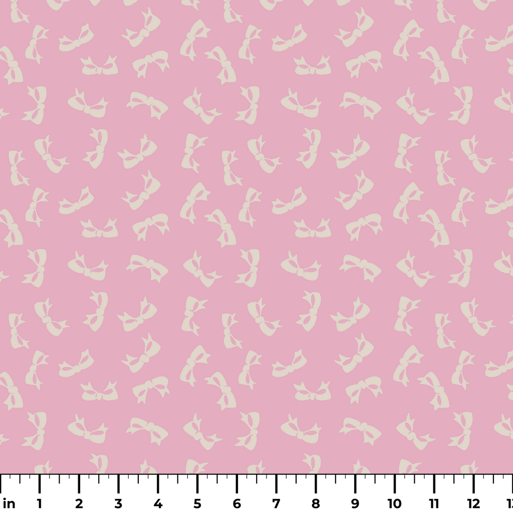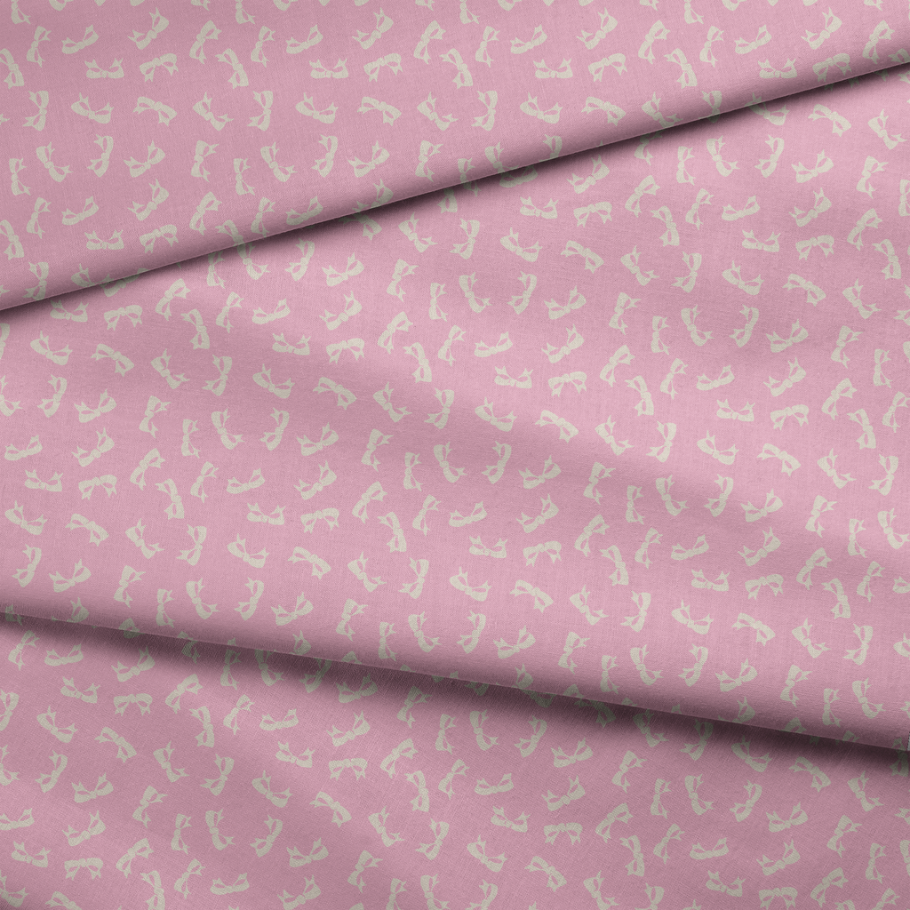 Delicate beige bows scattered across an orchid pink background create a timeless, feminine pattern. Perfect for elegant accessories or vintage-inspired fashion pieces.