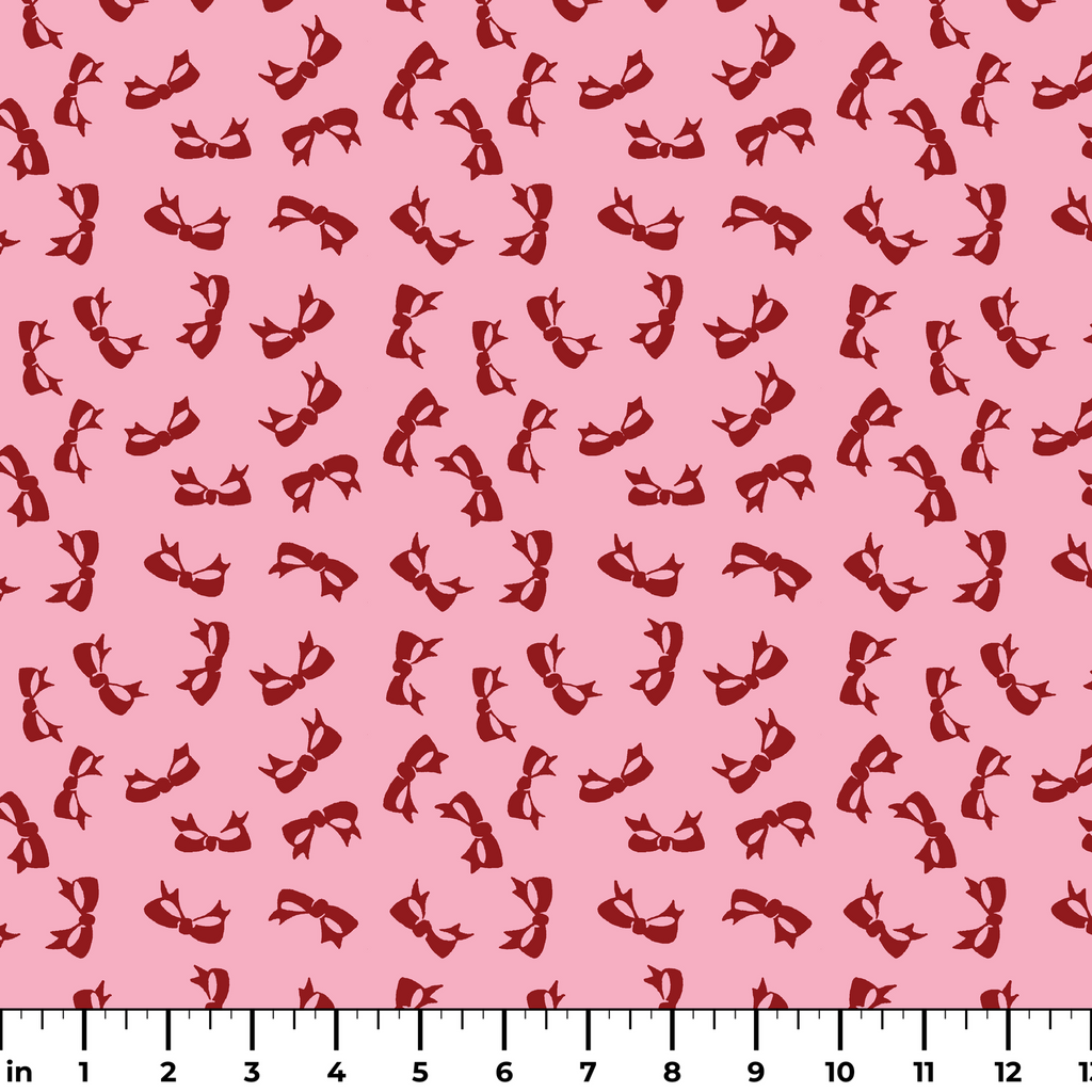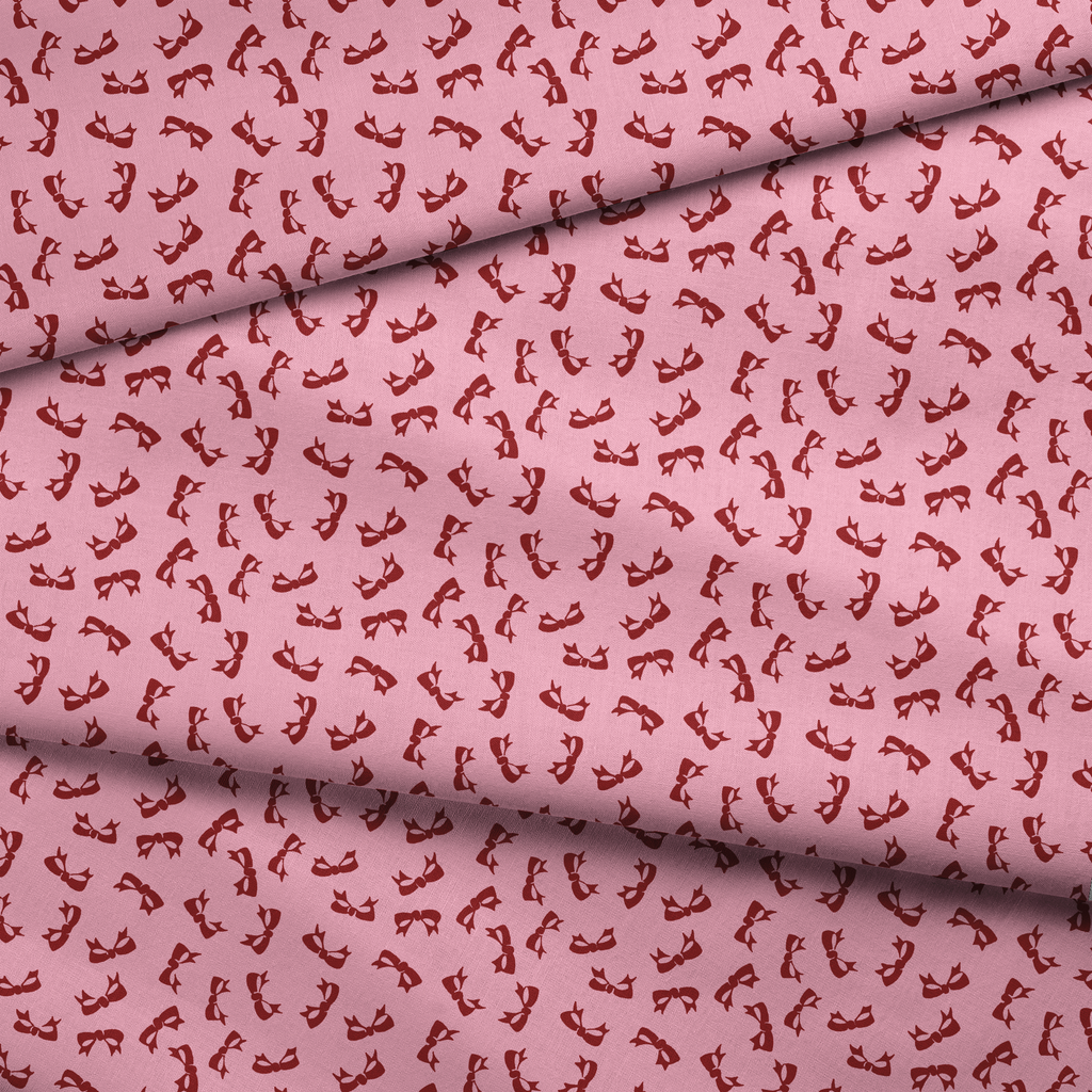 Delicate crimson red bows scattered across an orchid pink background create a timeless, feminine pattern. Perfect for elegant accessories or vintage-inspired fashion pieces.