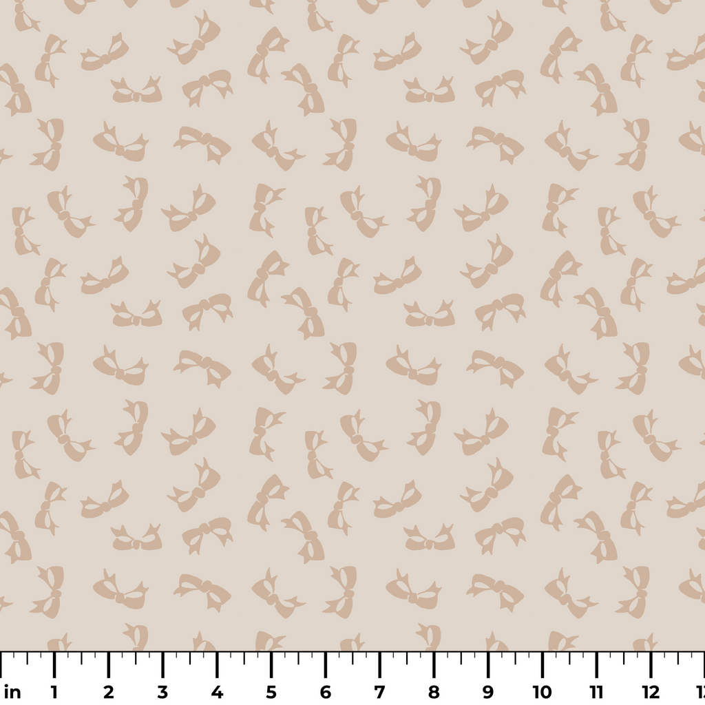 Delicate beige bows scattered across a warm taupe background create a timeless, feminine pattern. Perfect for elegant accessories or vintage-inspired fashion pieces.