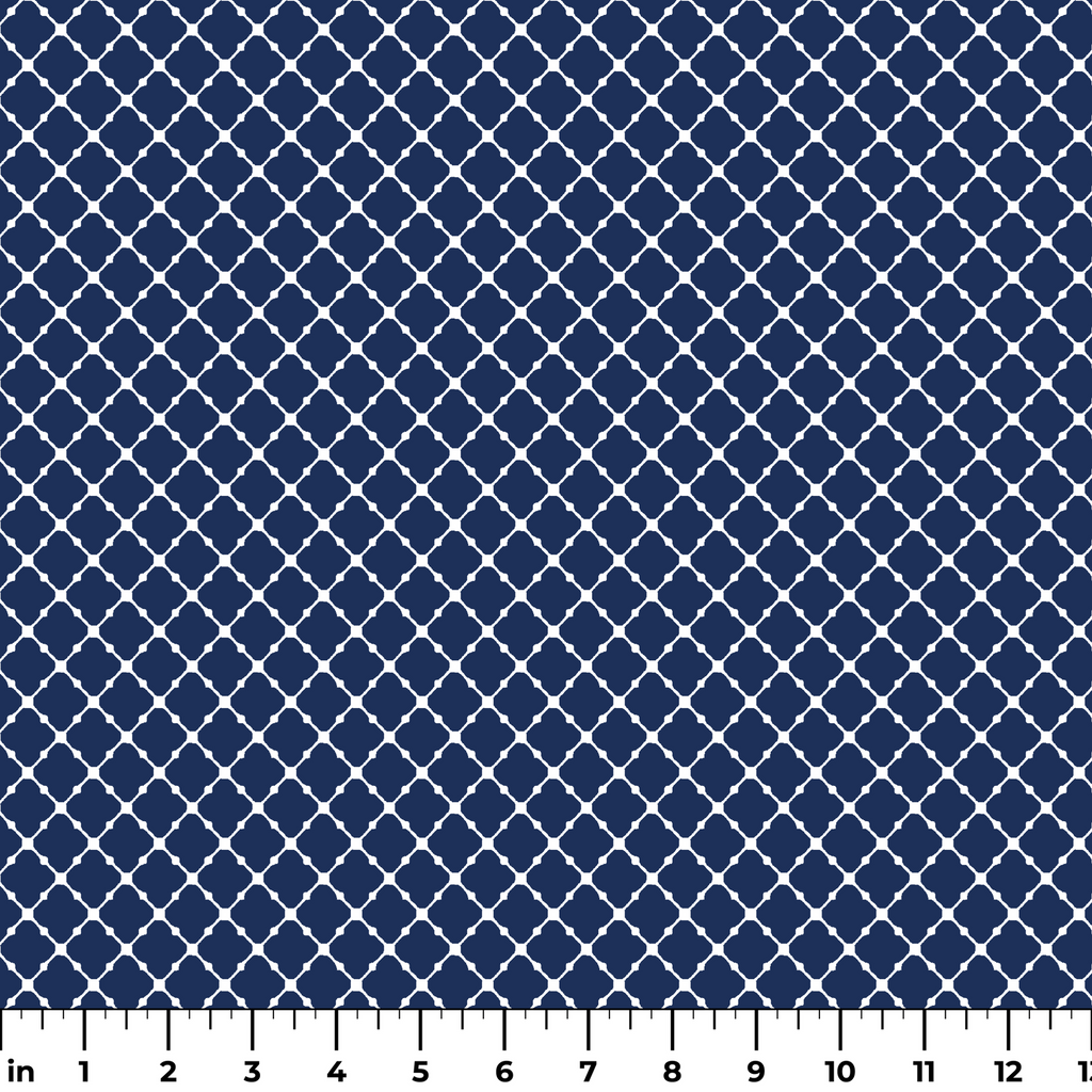 Elegant navy and white lattice pattern in a classic Moroccan-inspired geometric design - perfect for contemporary home decor with a timeless Mediterranean aesthetic.