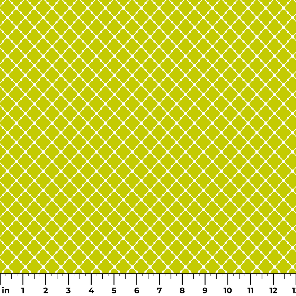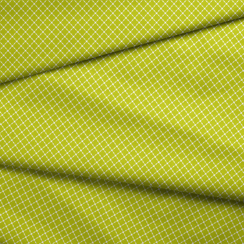 Elegant lattice pattern on a vibrant lime green background creates a stylish geometric design. Perfect for sewing contemporary home decor or trendy upholstery projects.