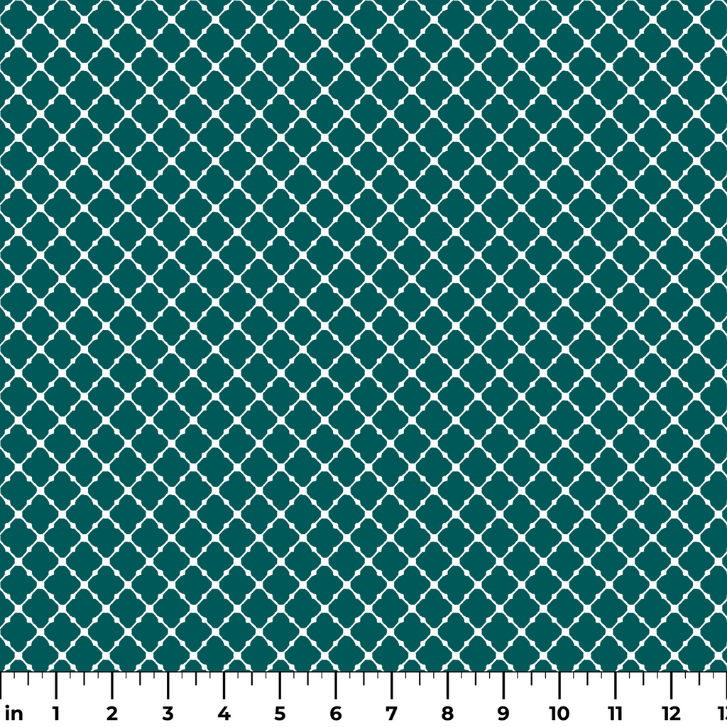 Elegant teal lattice pattern on white background creates a stylish geometric design. Perfect for contemporary home decor or trendy upholstery projects.