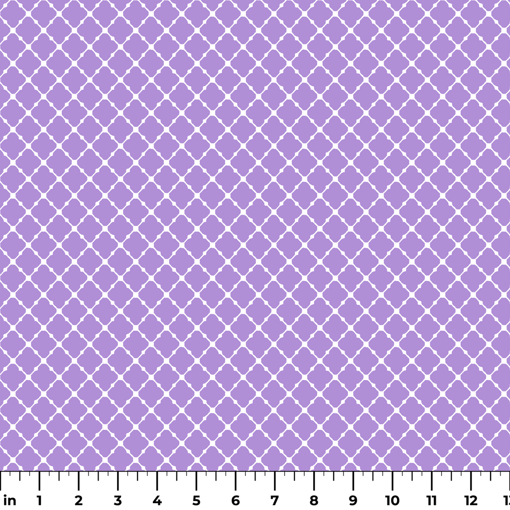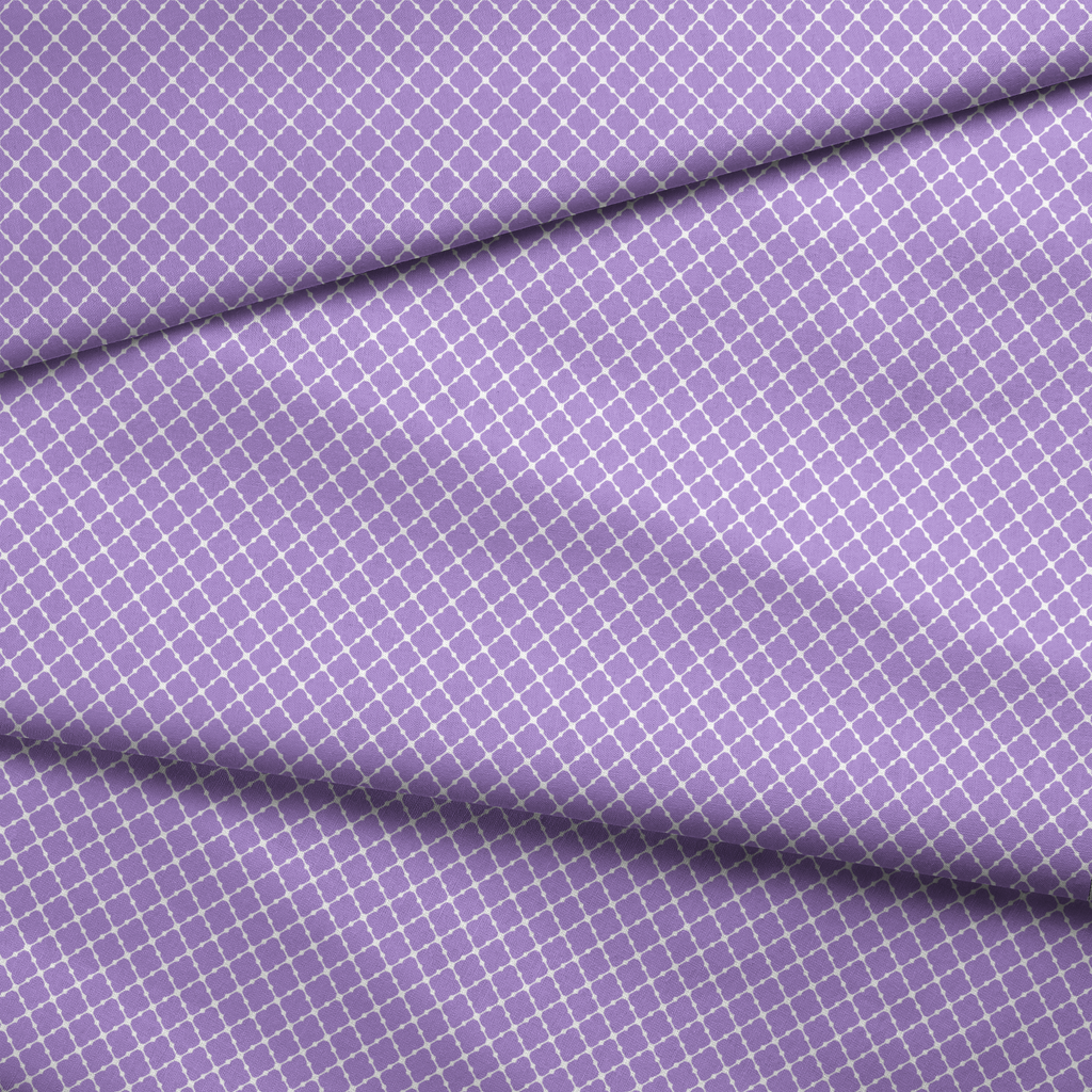Elegant lattice pattern on a bright lilac background creates a stylish geometric design. Perfect for sewing contemporary home decor or trendy upholstery projects.
