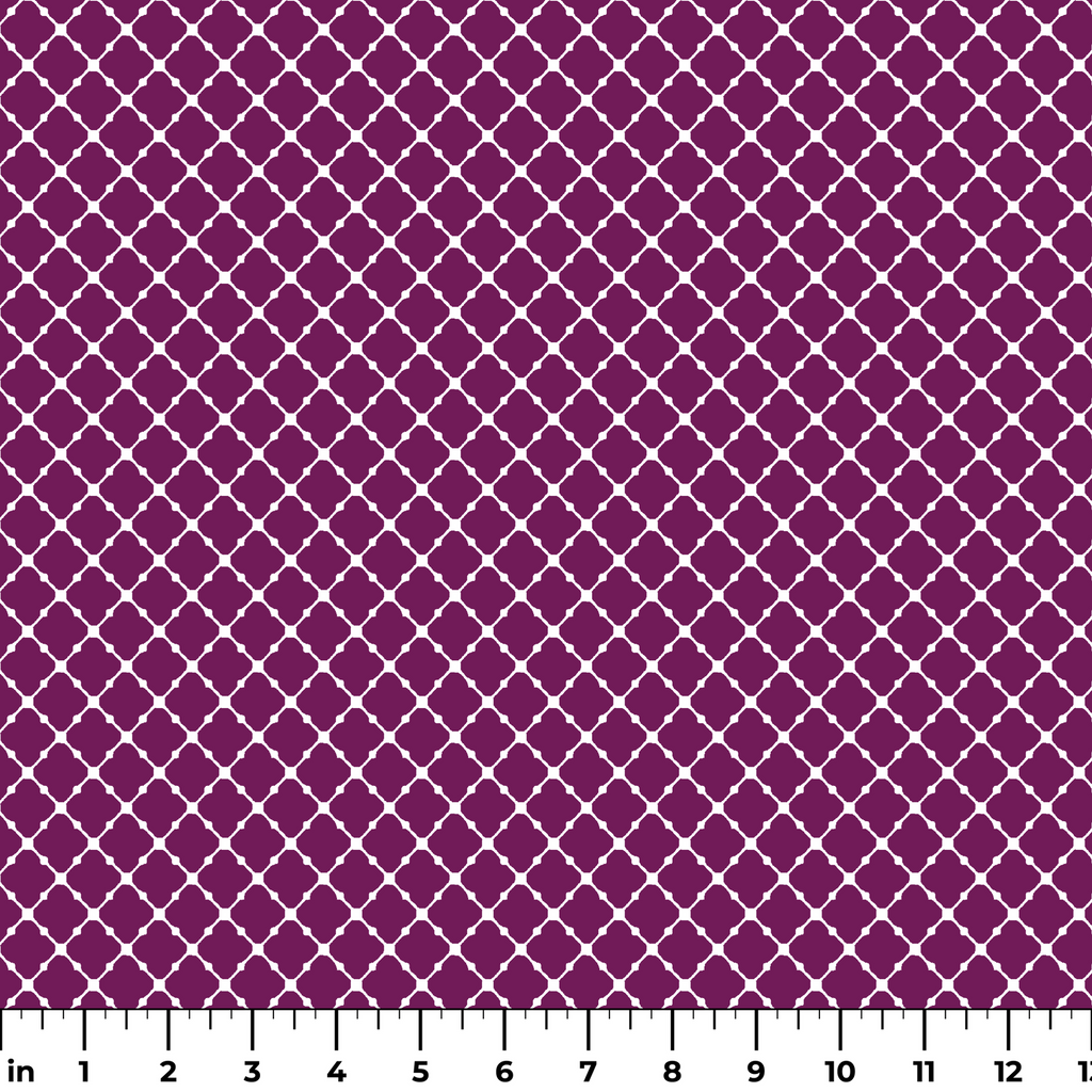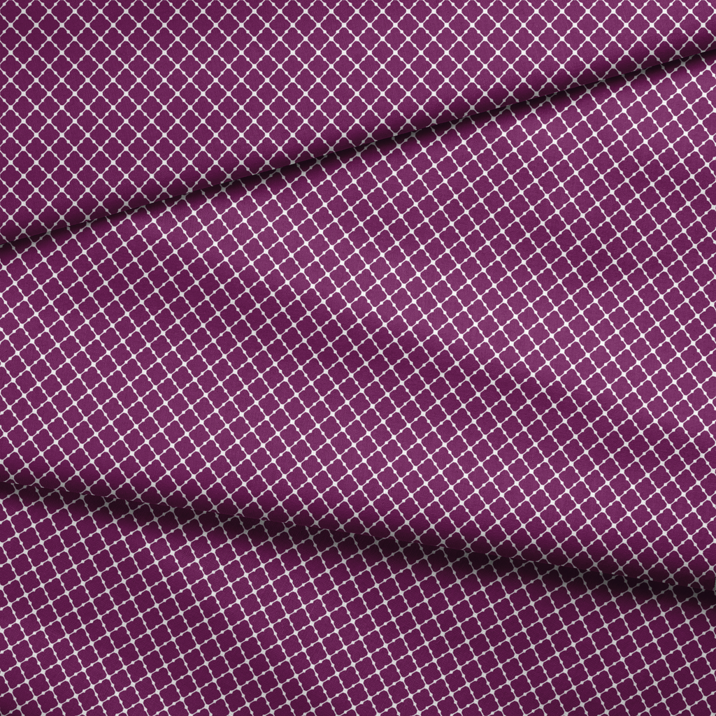 Elegant plum lattice pattern on white background creates a stylish geometric design. Perfect for contemporary home decor or trendy upholstery projects.