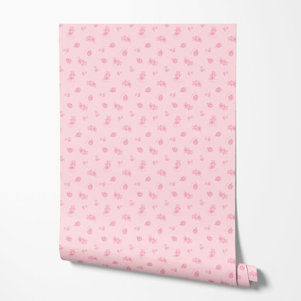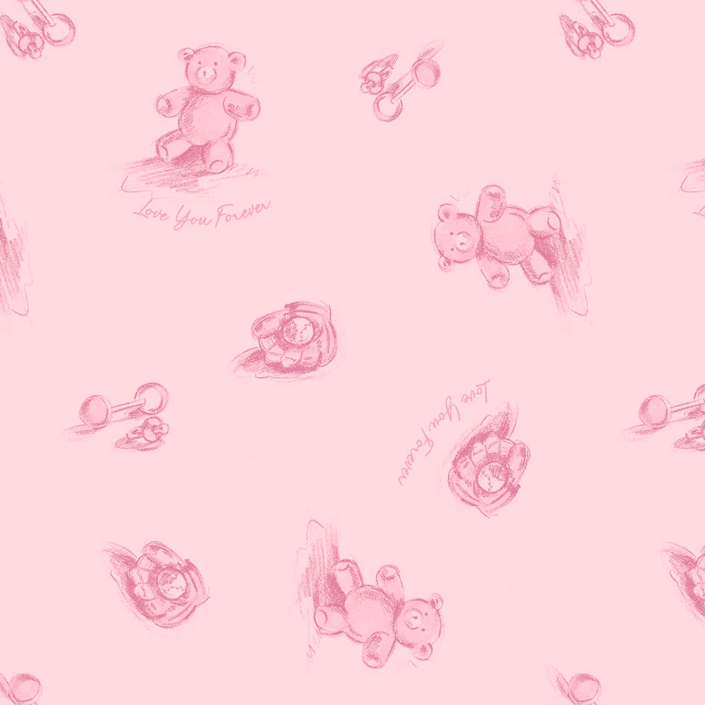Officially licensed "Love You Forever®" pattern featuring delicate pink bears with "Love You Forever" text on a soft pink background. Perfect for nurseries and for fans of the classic book, Love You Forever.