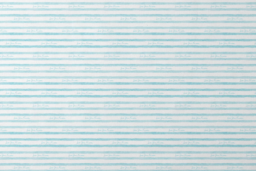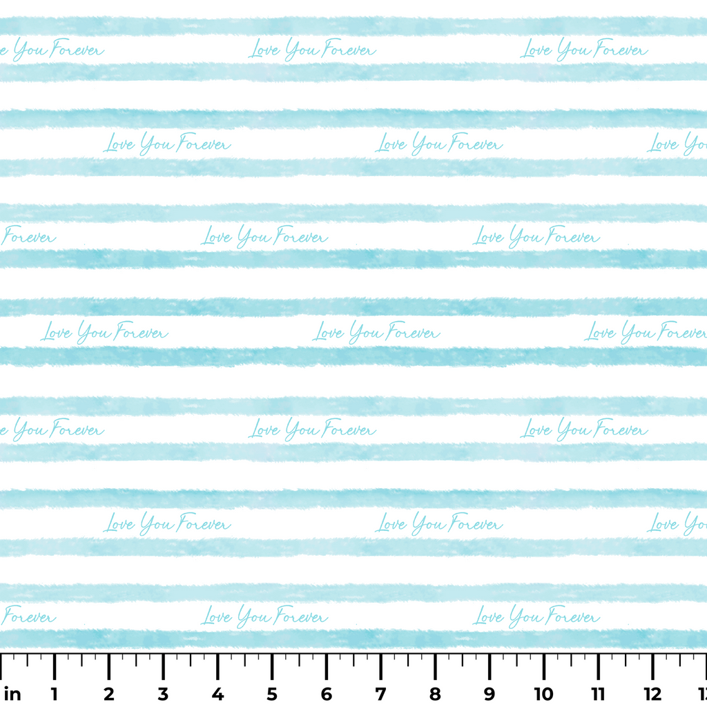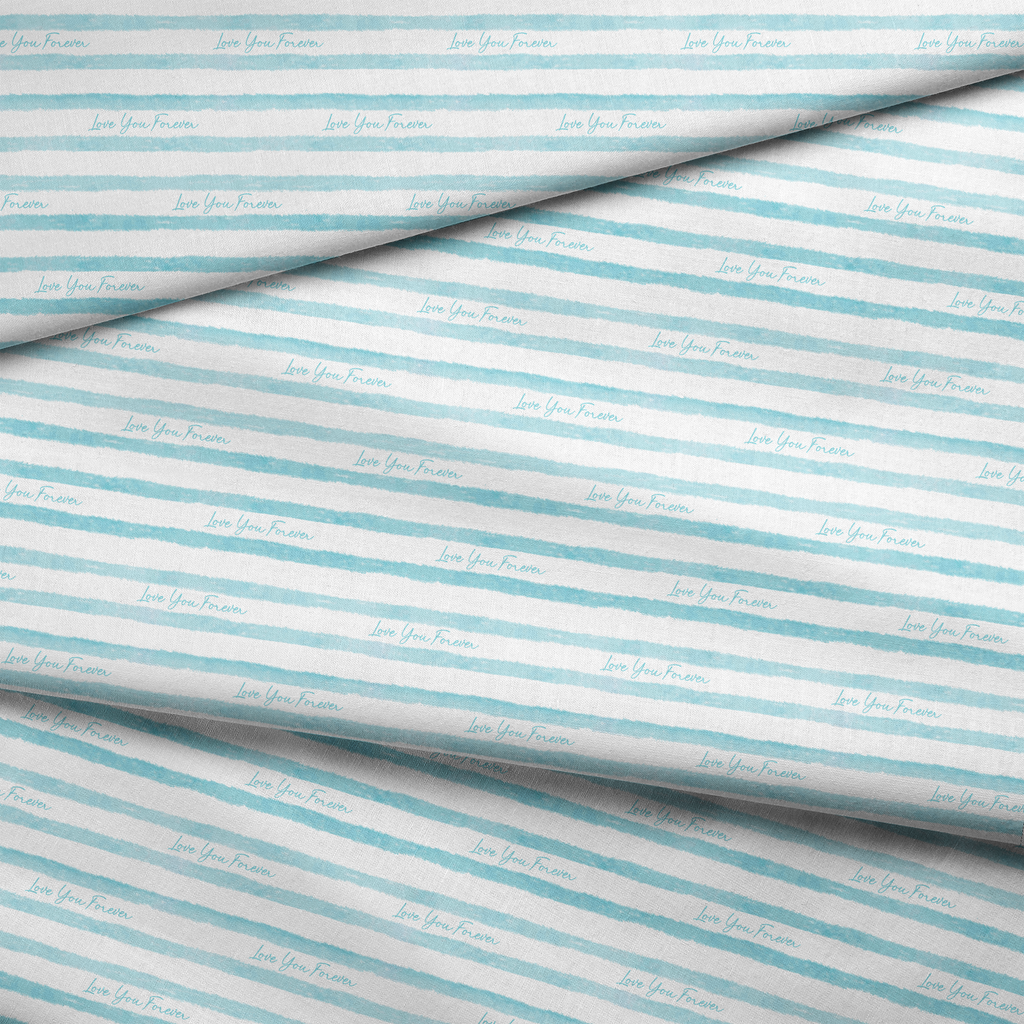 Officially licensed "Love You Forever®" pattern featuring soft blue stripes with elegant "Love You Forever" script lettering. Perfect for nursery decor and for fans of this classic book, Love You Forever.