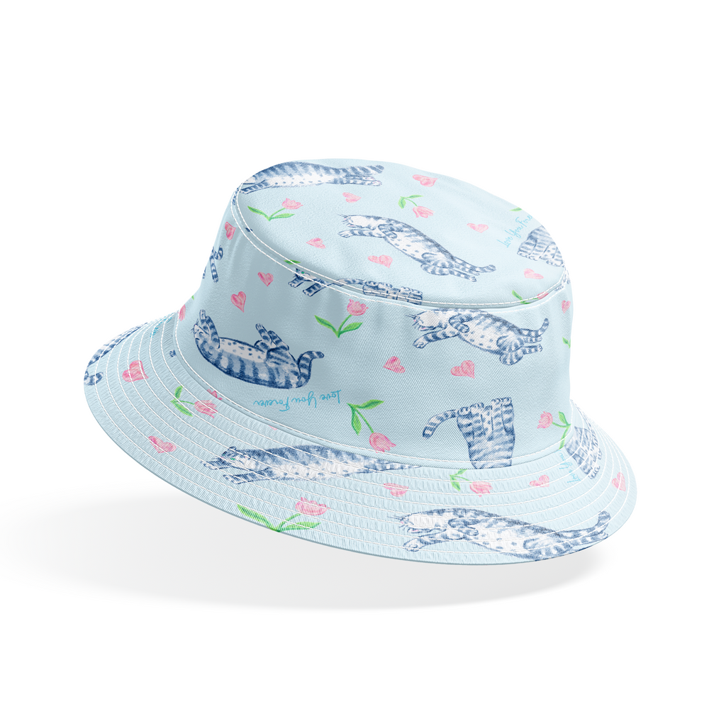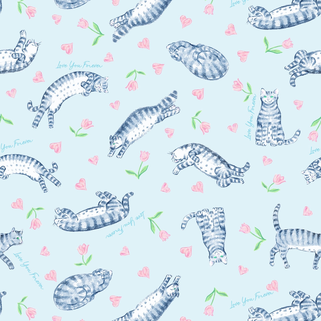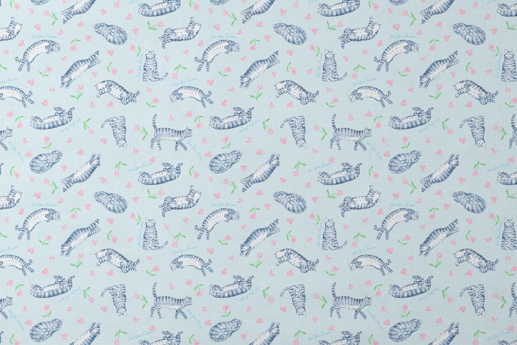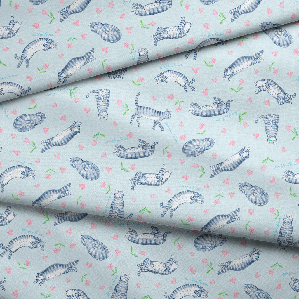 Love You Forever® Cats and Tulips on Blue Fabric