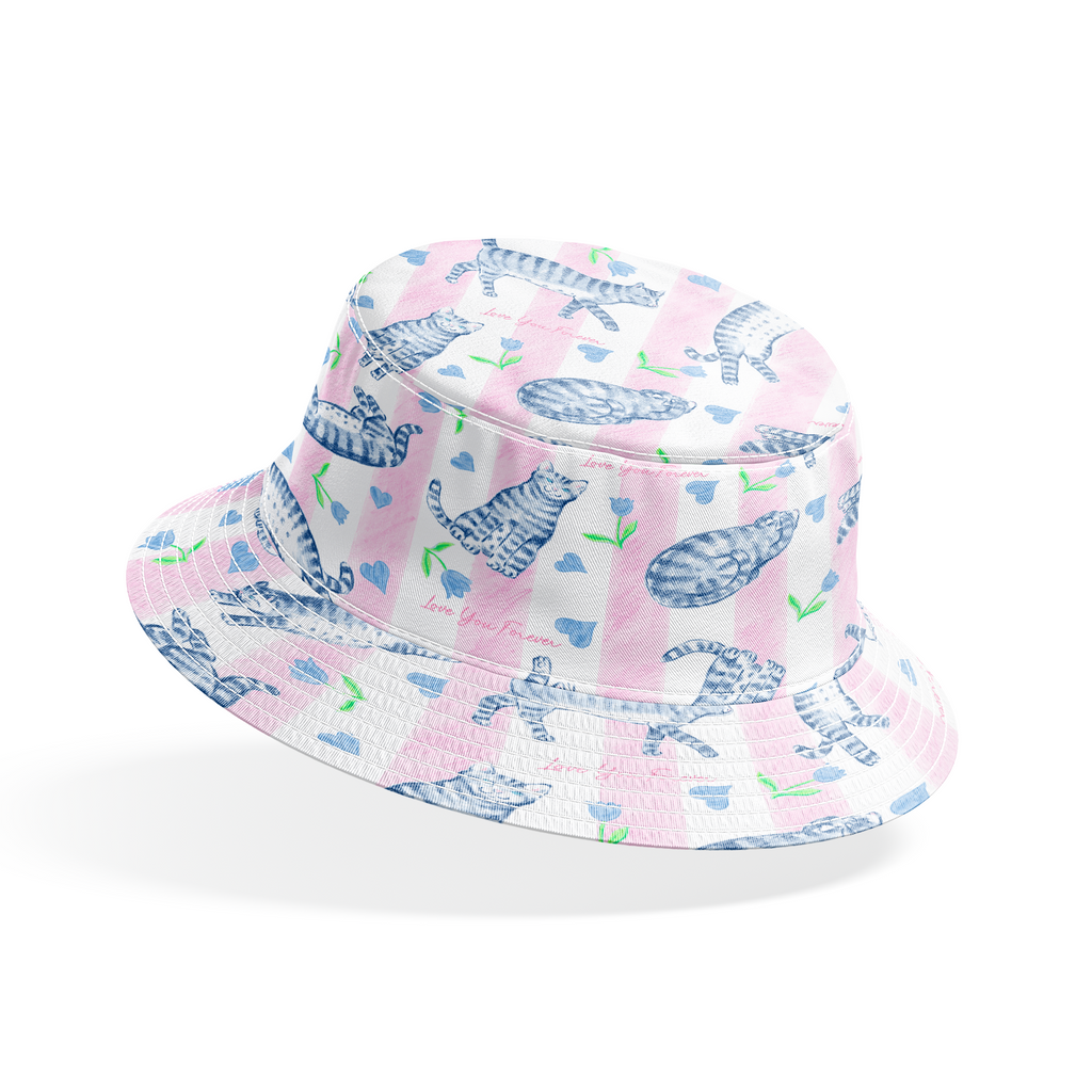 Love You Forever® Cats and Tulips on Pink Stripes Fabric