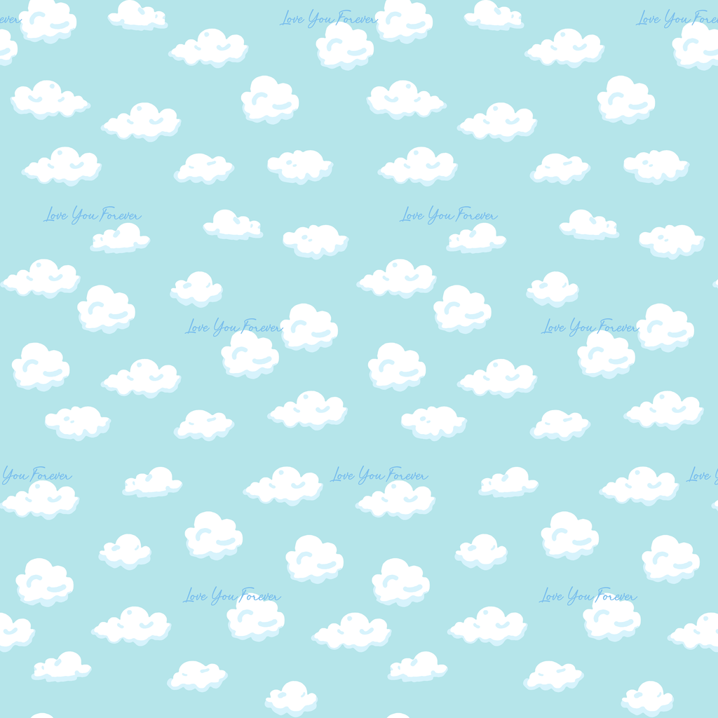 Officially licensed "Love You Forever®" pattern featuring dreamy clouds floating across a soft blue background. Perfect for nursery decor, children's room accessories and for fans of the classic book, Love You Forever.