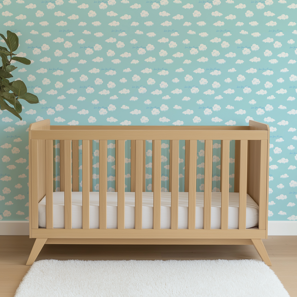 Officially licensed "Love You Forever®" pattern featuring dreamy clouds floating across a soft blue background. Perfect for nurseries and for fans of the classic book, Love You Forever.