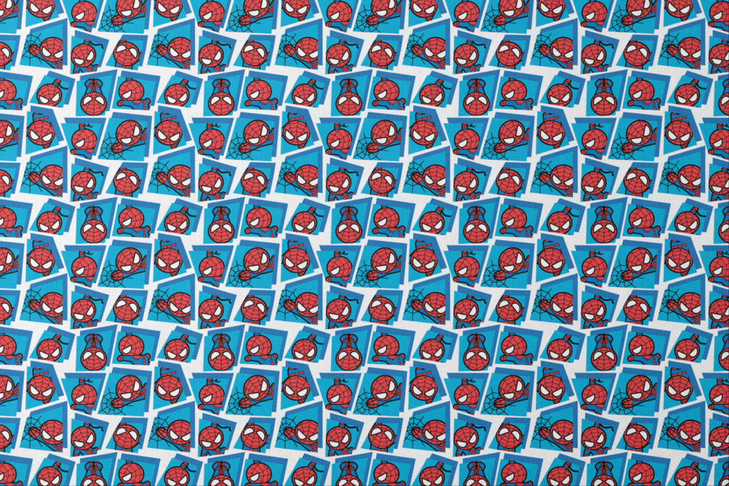 Marvel Spider-Man Kawaii Comic Panels on Blue Fabric