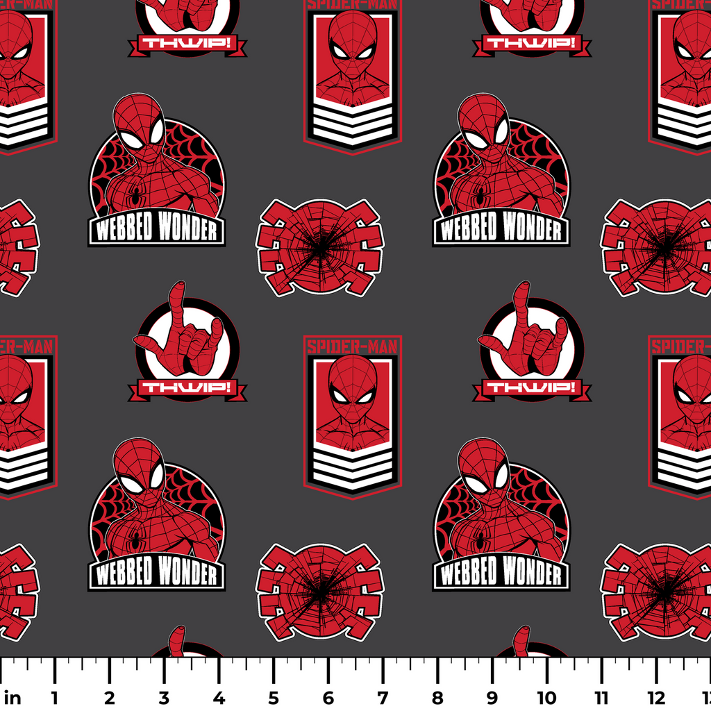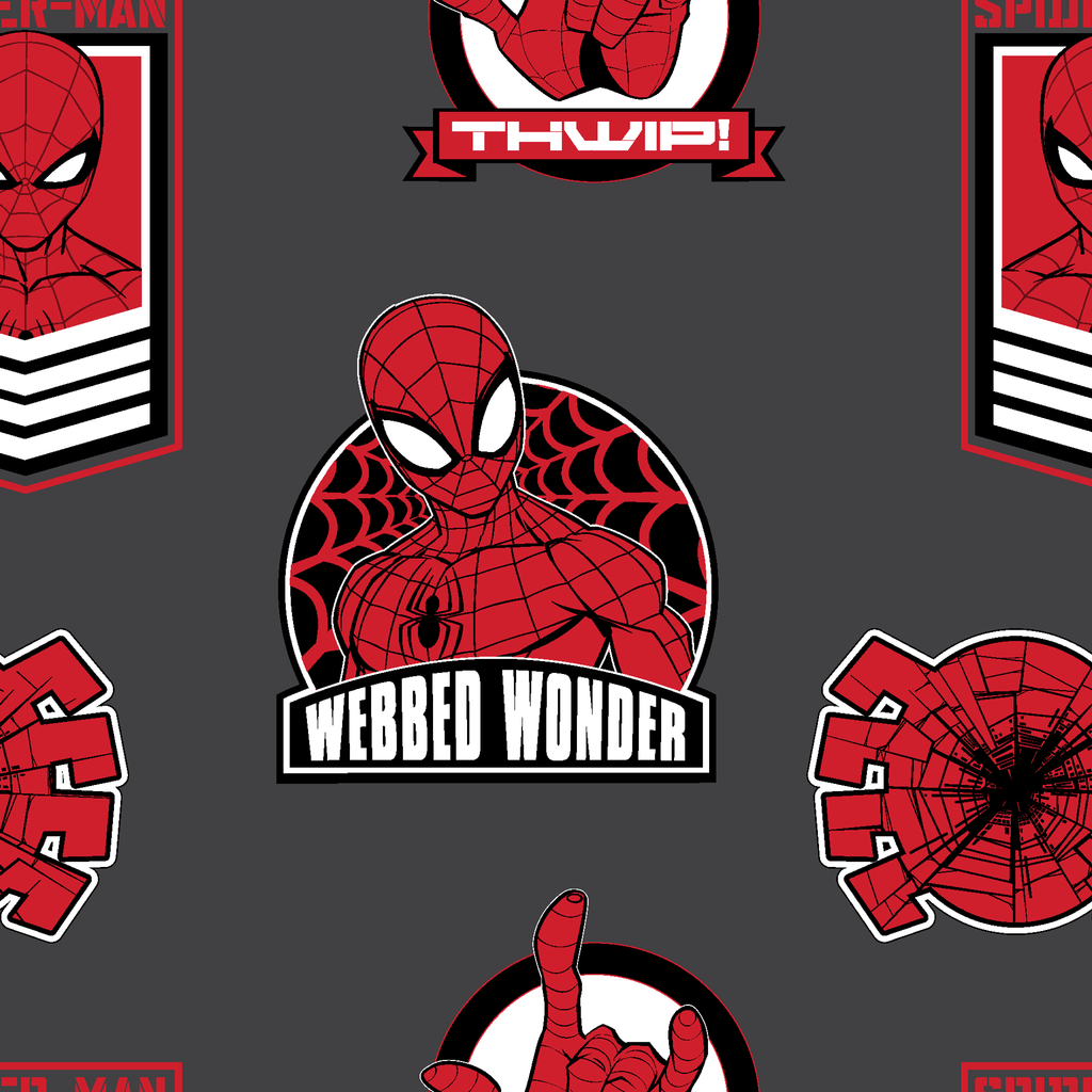 This eye-catching Marvel Spider-Man features classic red and black Super Hero graphics on a gray background, perfect for Marvel fans who love comic book style and web-slinging action.