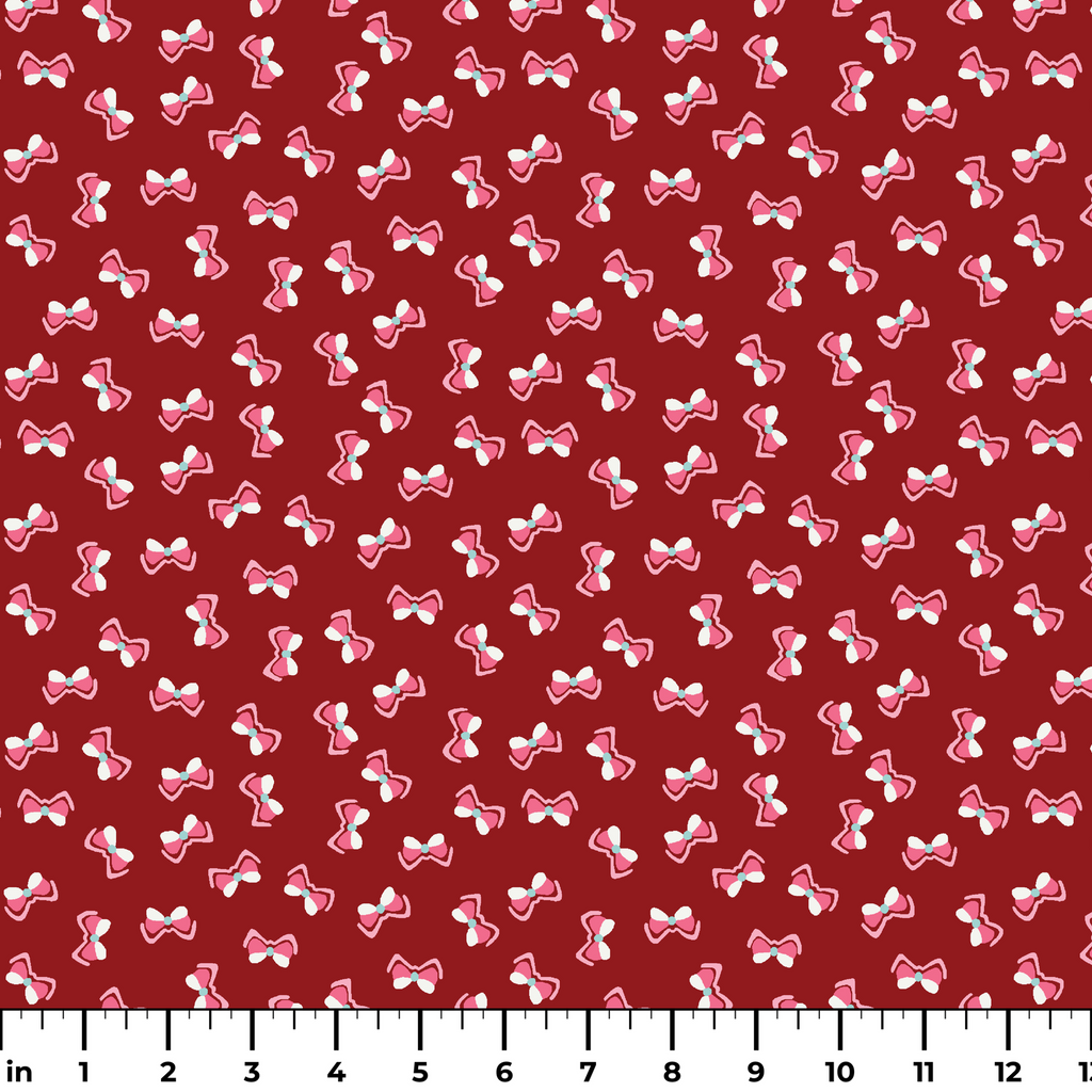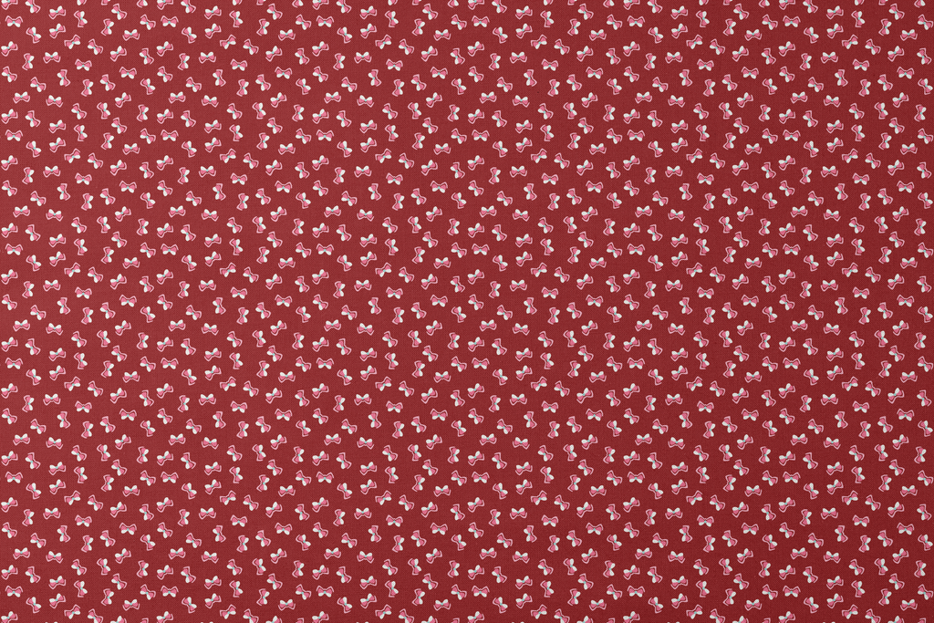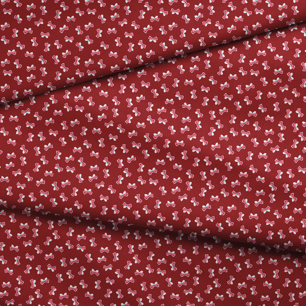 Megan Bows on Crimson Fabric