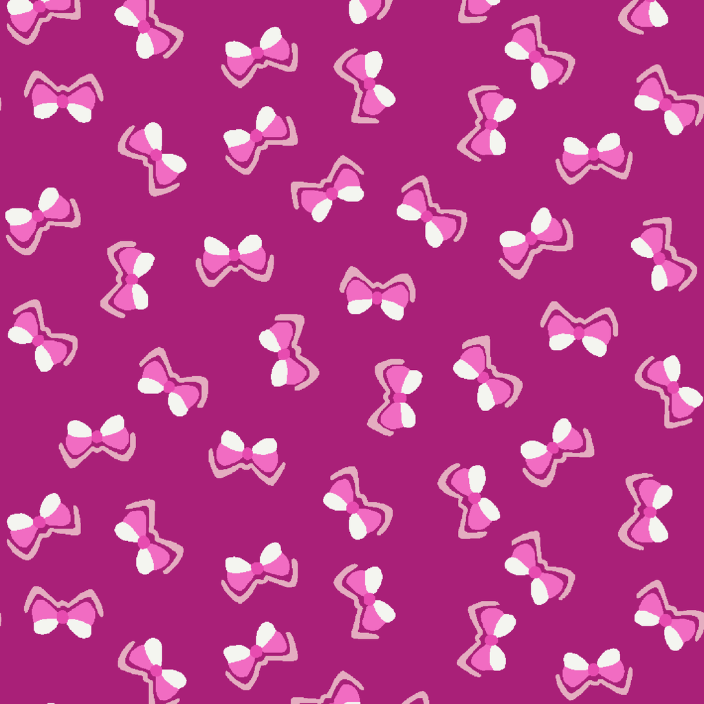 Whimsical pink bow pattern with scattered small-scale motifs on a vibrant magenta background, perfect for playful feminine apparel and accessories.