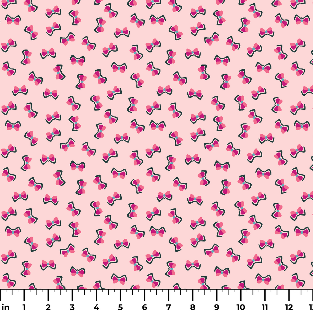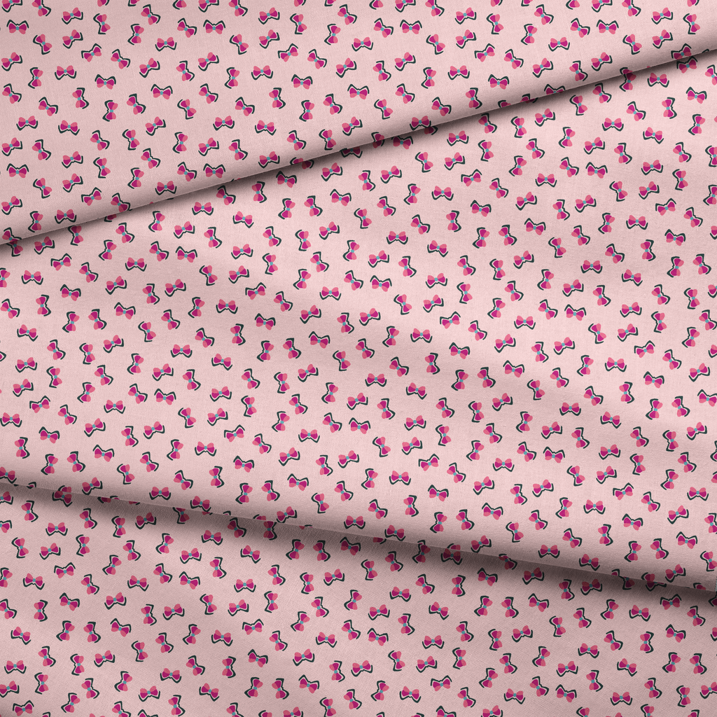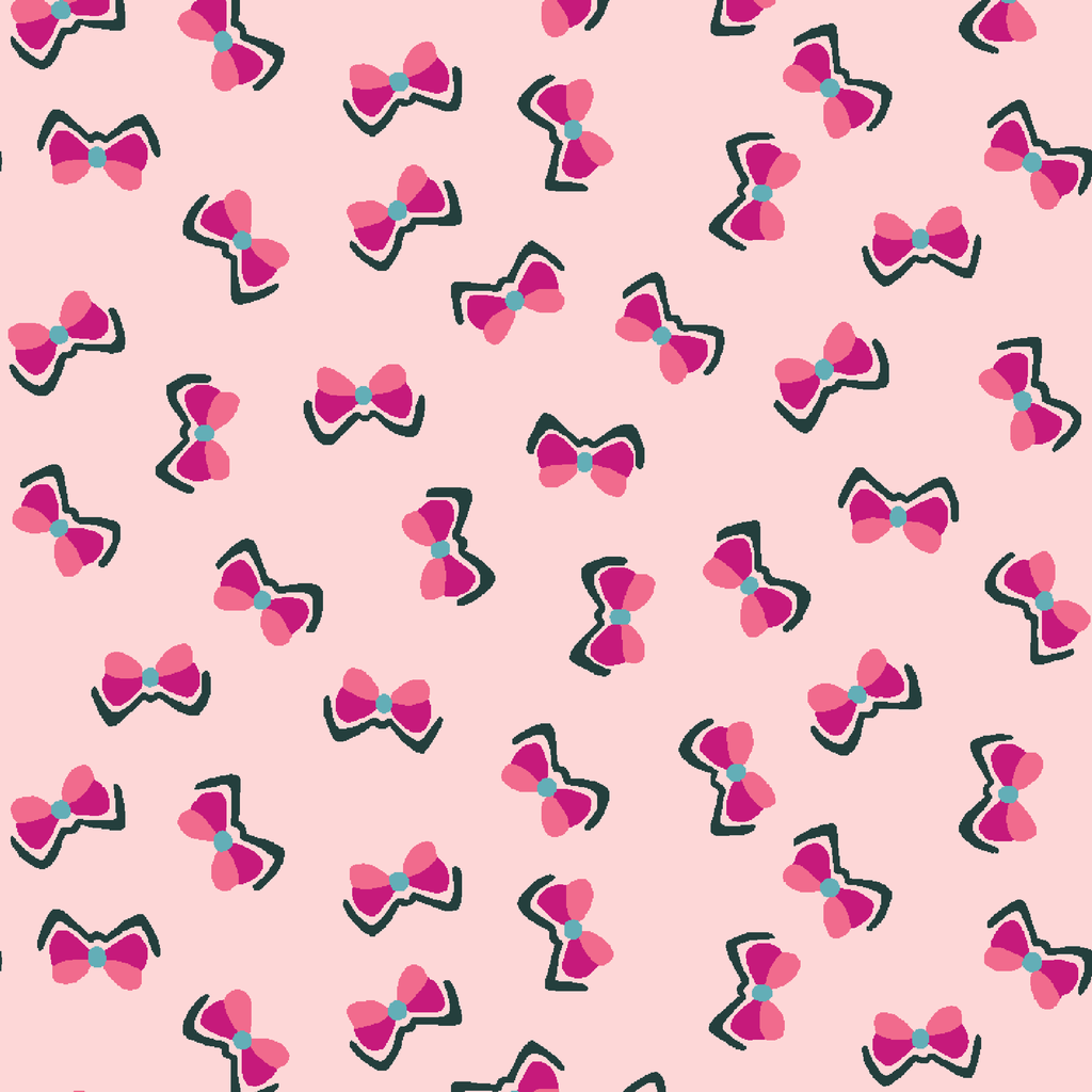 Adorable pink bows scattered on a soft blush background creating a sweet feminine pattern perfect for girly projects and cute accessories.