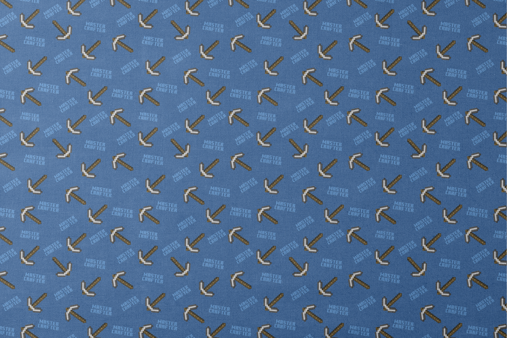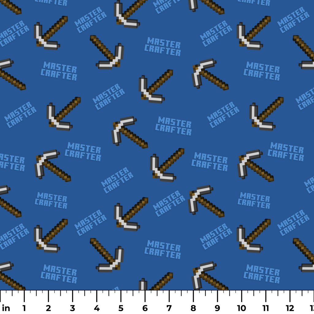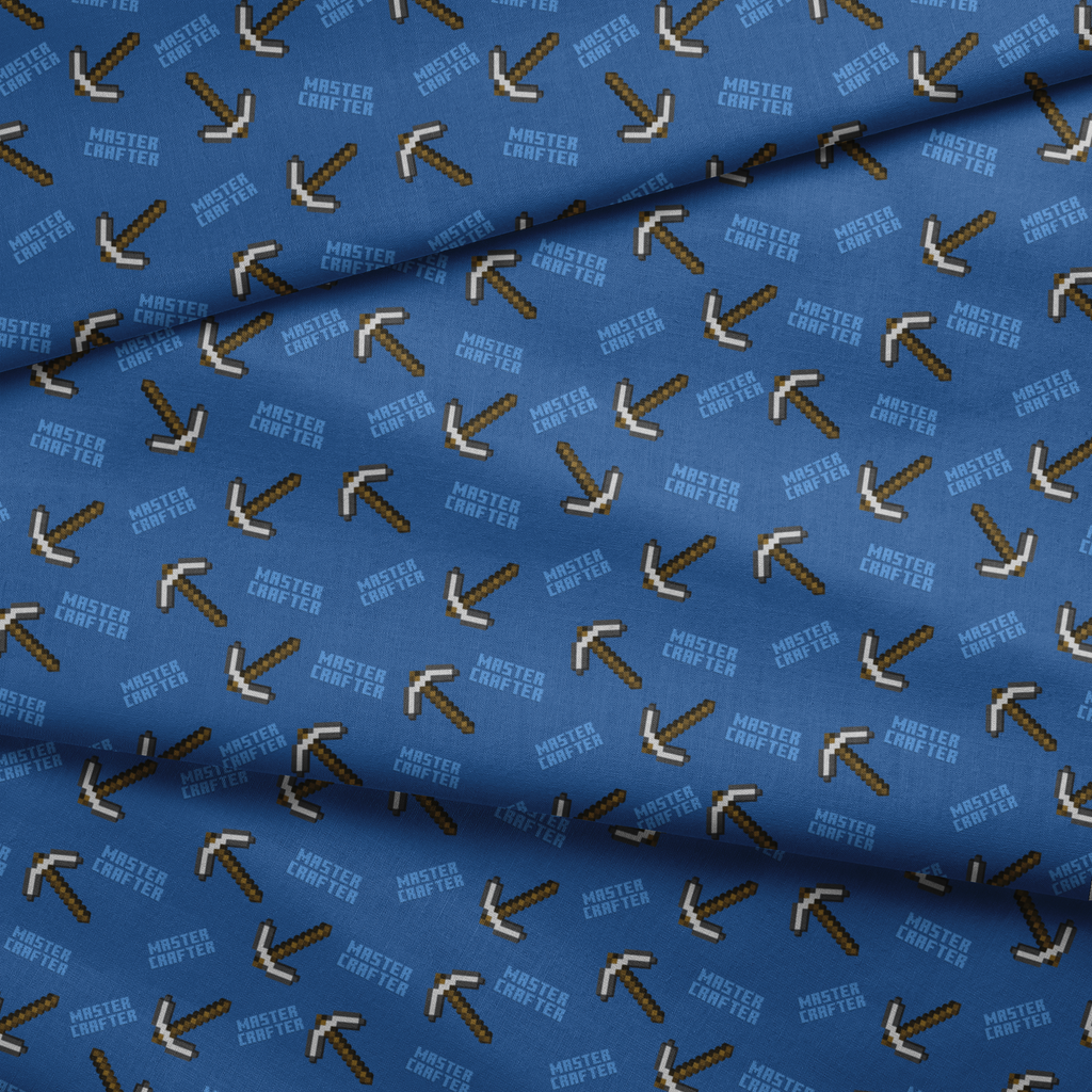 Pixel-perfect Minecraft pickaxes on a blue background with "MASTER CRAFTER" text. Perfect for gamers who love the iconic blocky aesthetic of the crafting and building game.