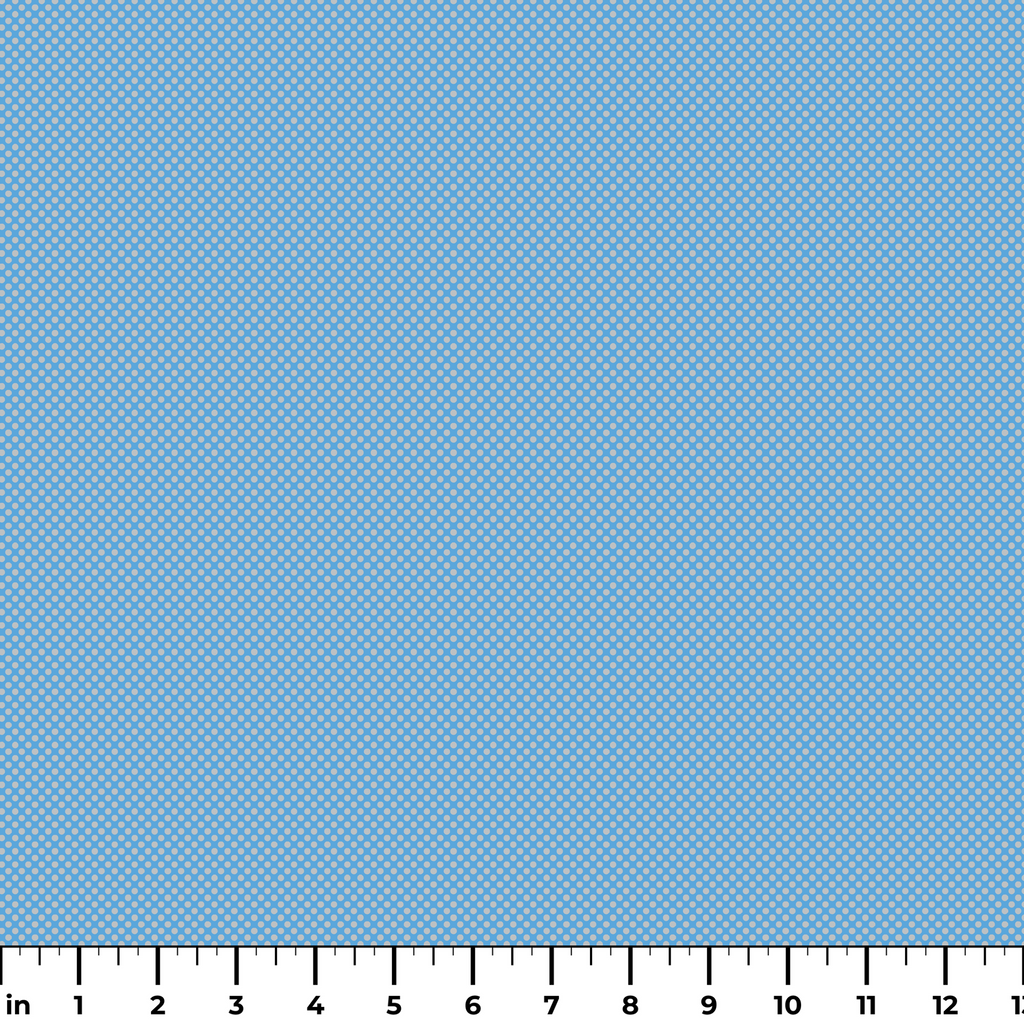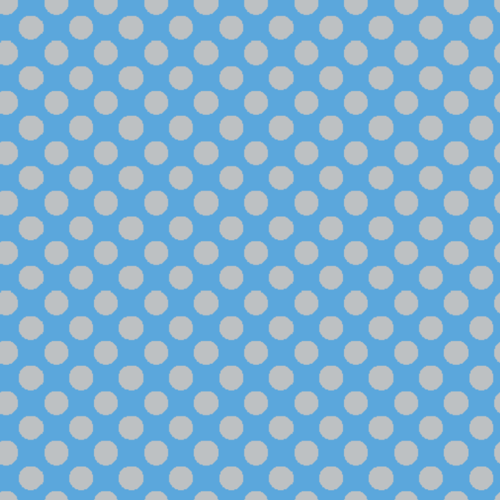 Classic light blue design with gray polka dots creates a cheerful retro pattern perfect for quilting, clothing, or home decor projects.