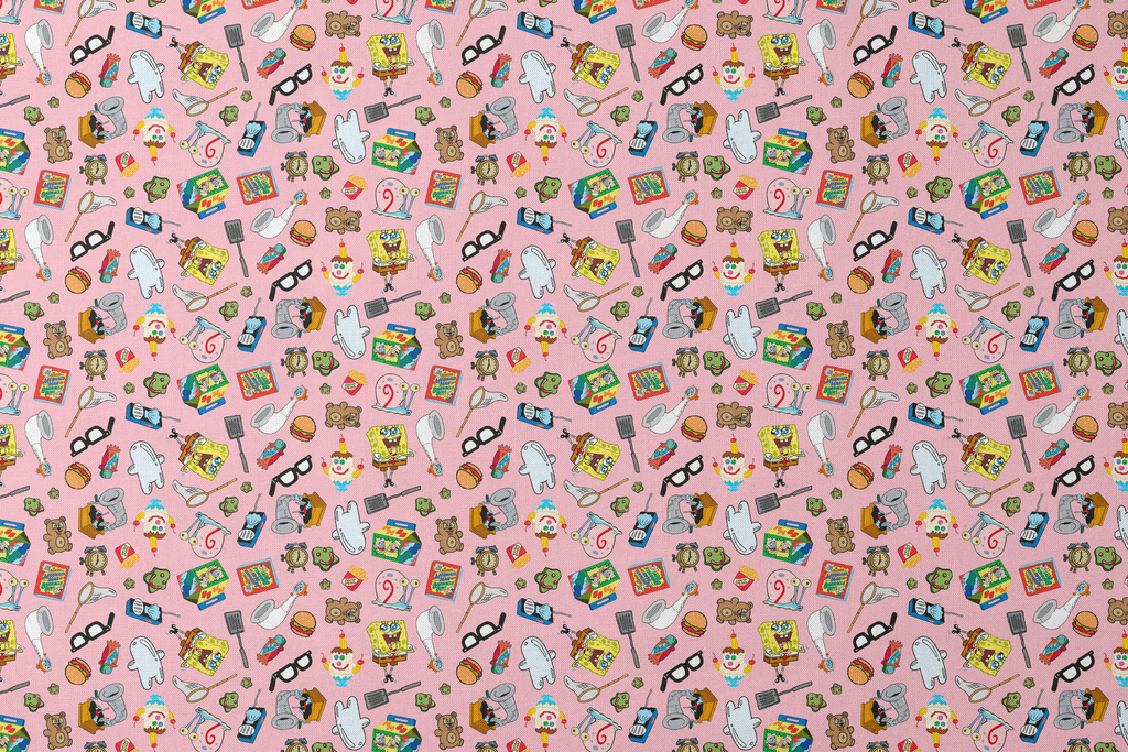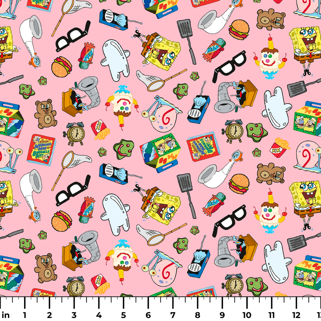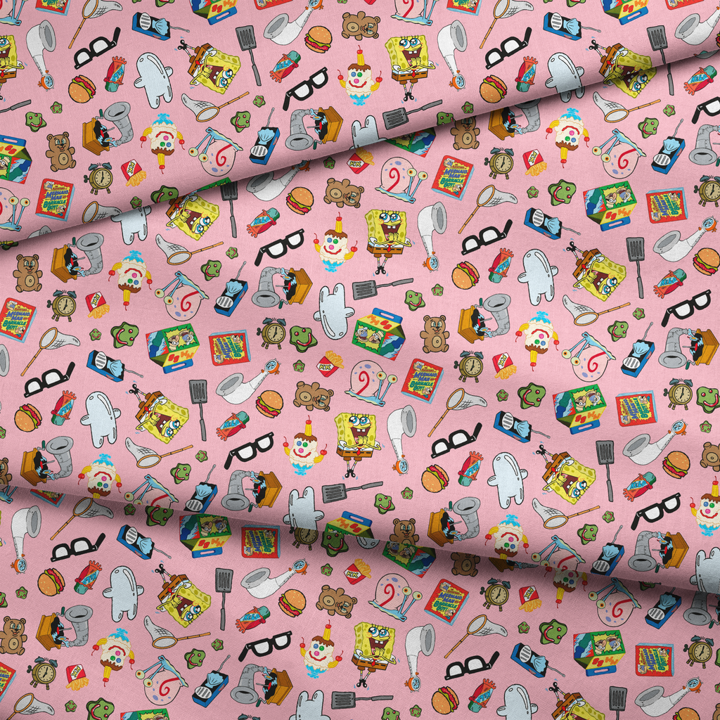 Nickelodeon SpongeBob Nostalgia Favorite Things on Pink Fabric