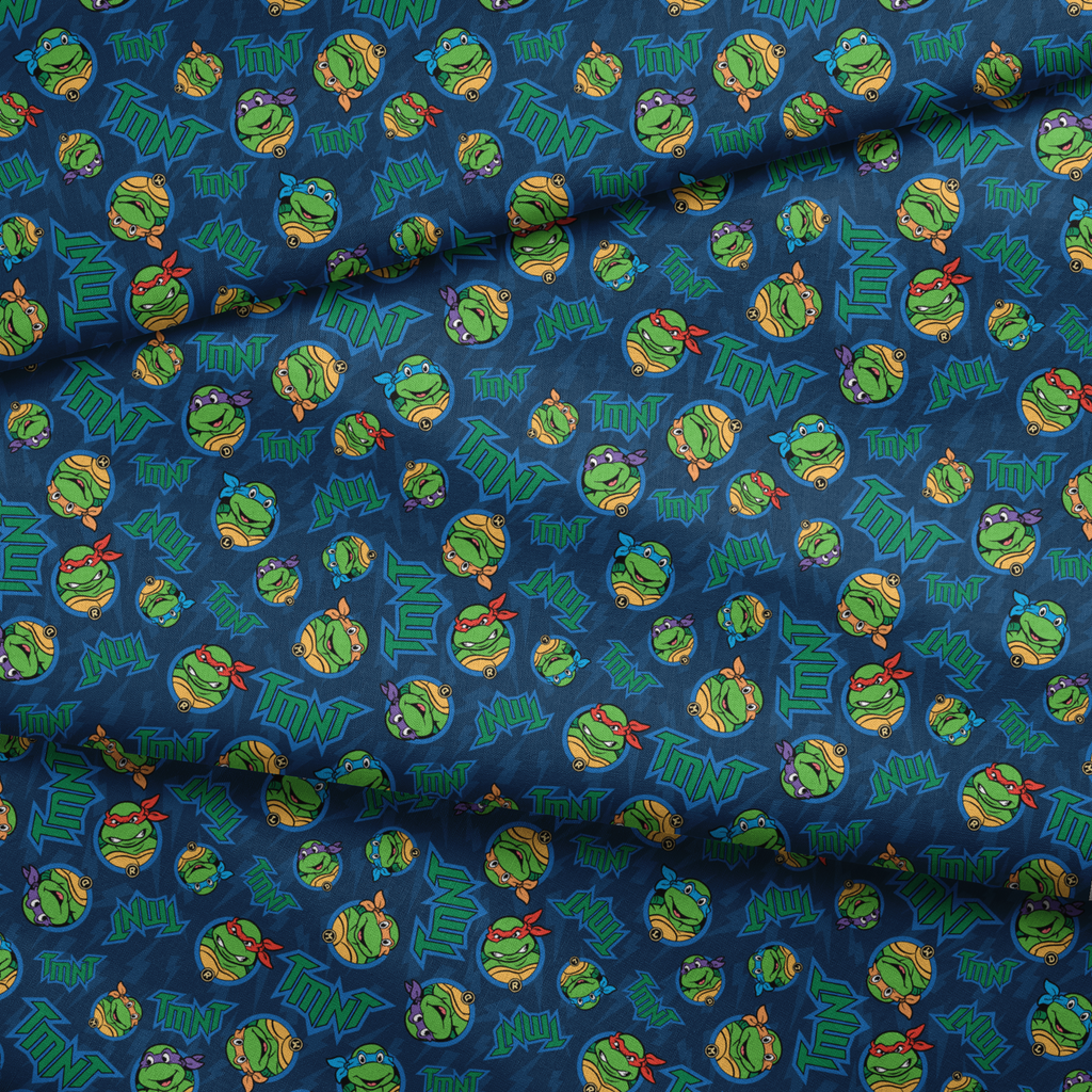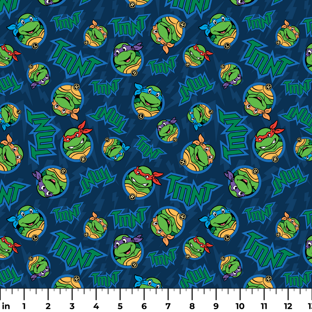 Nickelodeon TMNT Blue Faces & Bold Logo Fabric