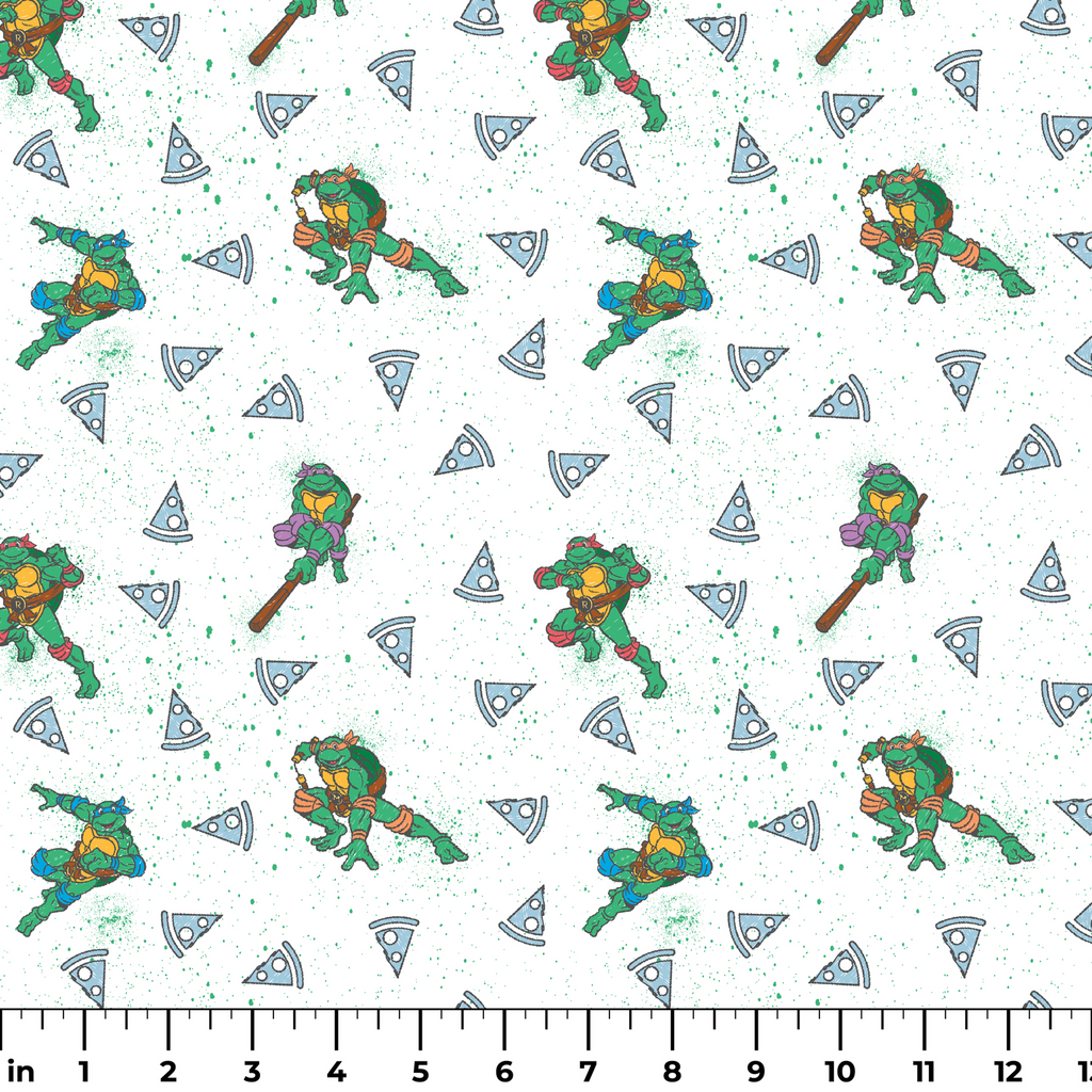 Nickelodeon TMNT Green Splatters & Pizza Fabric