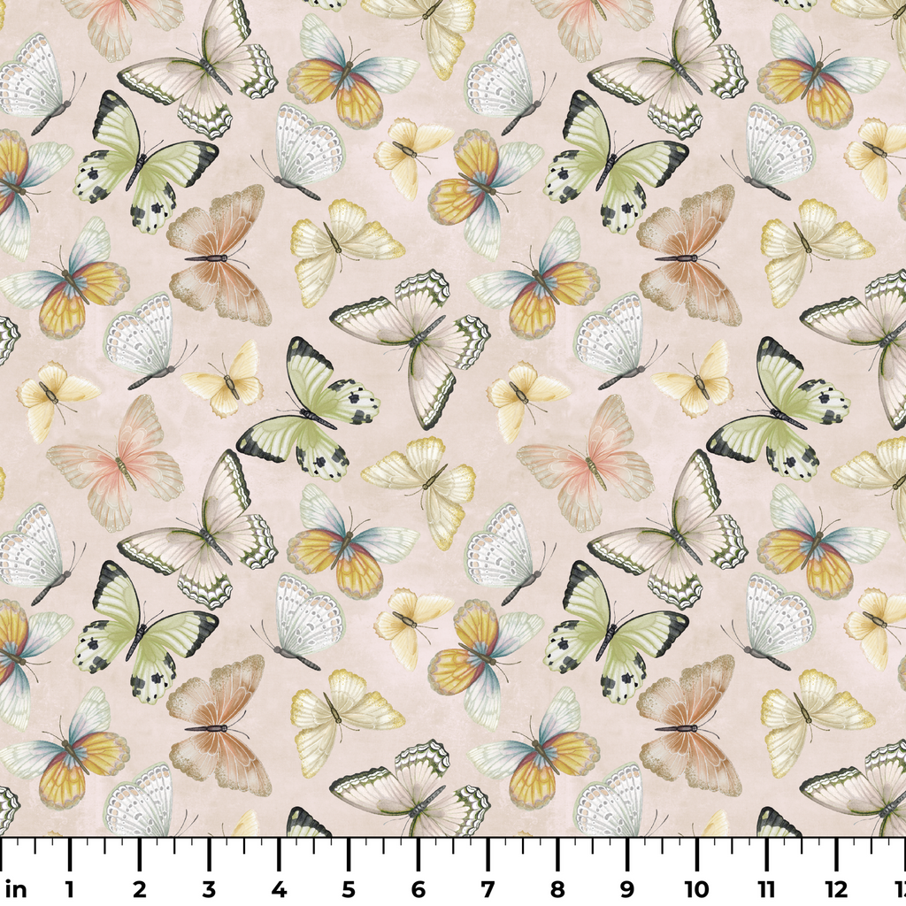Nicole Tamarin Vintage Butterfly Collection on Cream Fabric