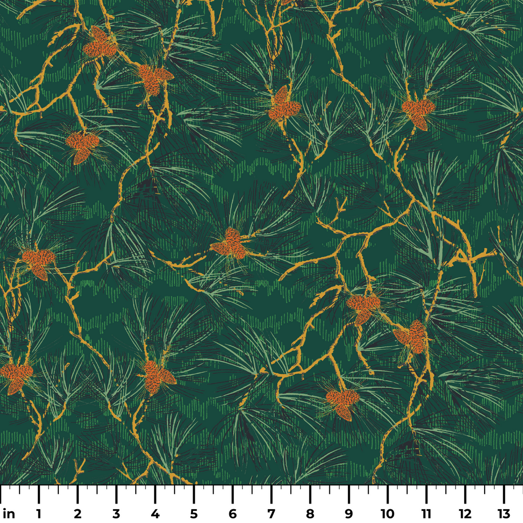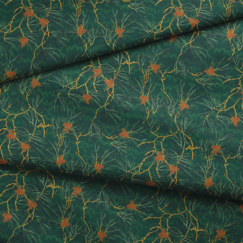 Rich winter-inspired branches in green tones create a holiday woodland pattern, perfect for seasonal home decor and holiday crafting projects.