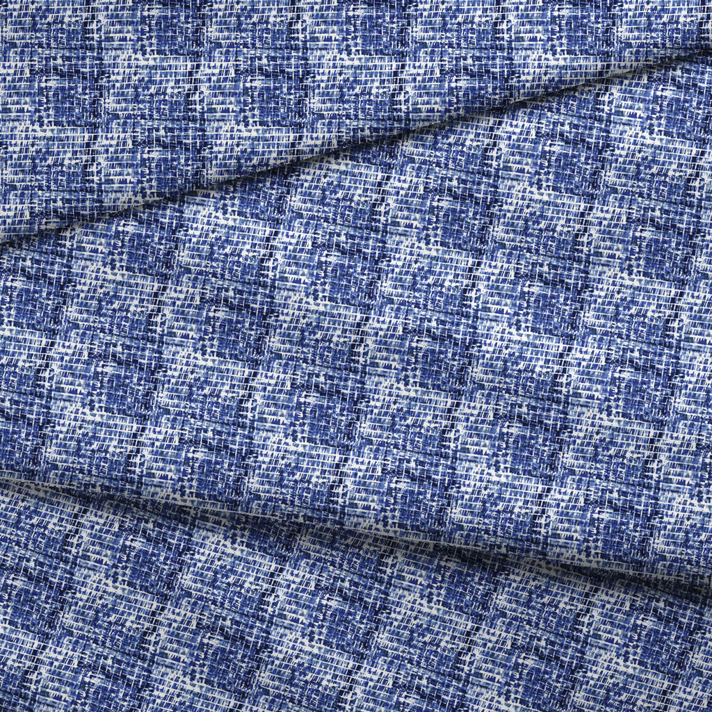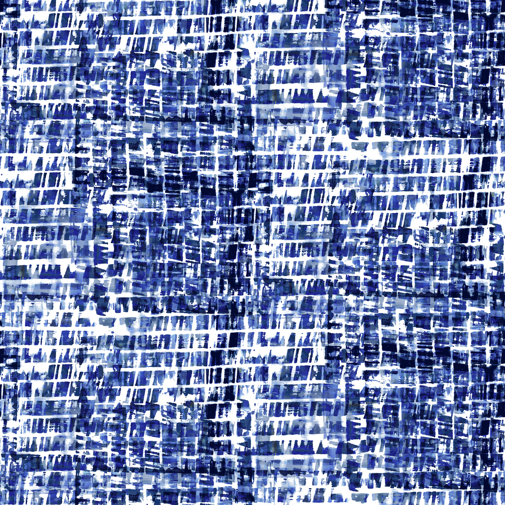 Rich indigo strokes dance across a crisp white background in this abstract brushwork pattern, creating a textured effect reminiscent of shibori dyeing or hand-painted watercolor. The varying shades of navy, cobalt, and periwinkle blend in an organic crosshatch design that captures the essence of artisanal textile traditions. This versatile fabric would make stunning summer throw pillows or a statement lining for a handcrafted tote bag.