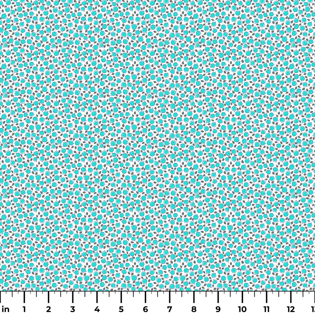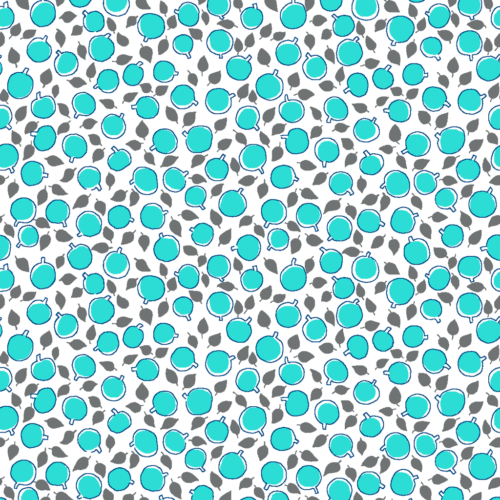Bright aqua apples dance across a crisp white background, accompanied by scattered charcoal gray leaves in this cheerful fruit-inspired pattern. The minimalist line-drawn style gives these apples a modern, slightly whimsical feel while maintaining a clean aesthetic. This refreshing fabric would make adorable kitchen accessories like aprons and tea towels, or bring a playful touch to a child's quilt or lunch bag.