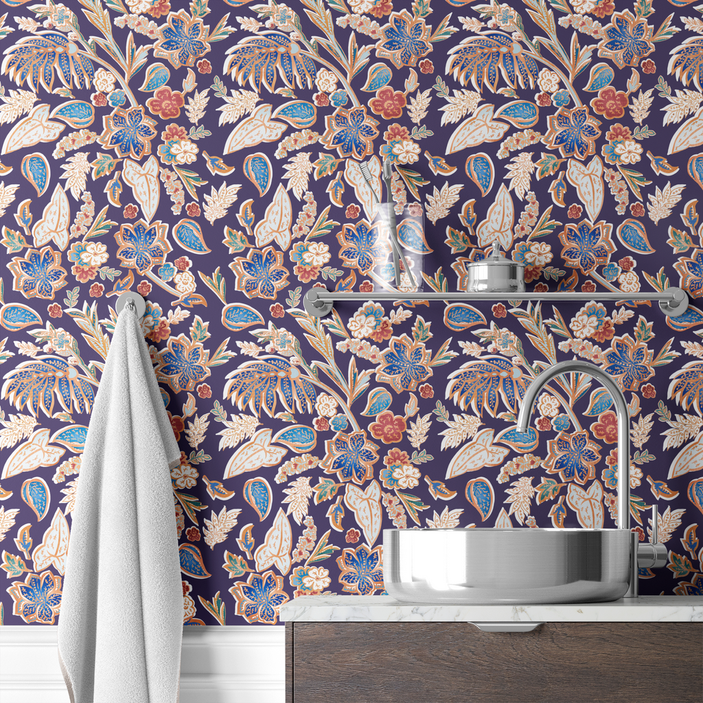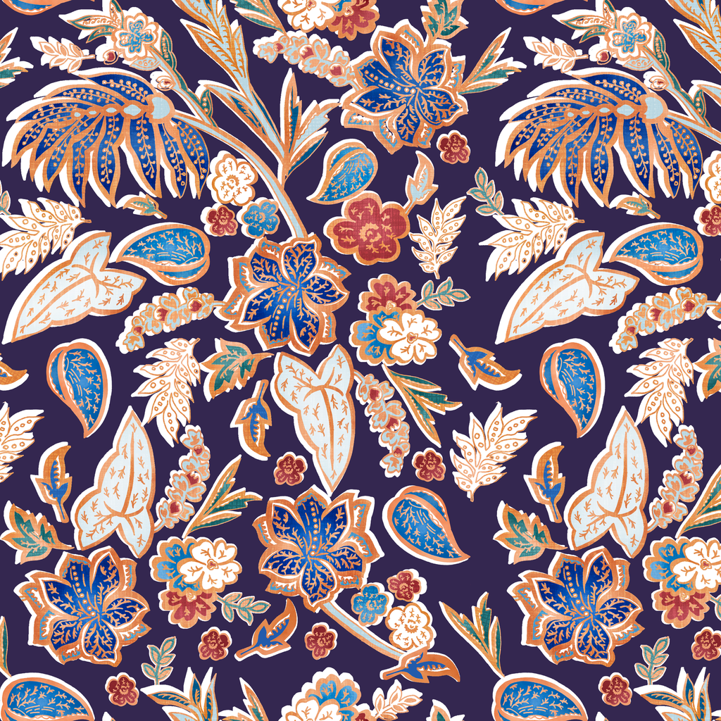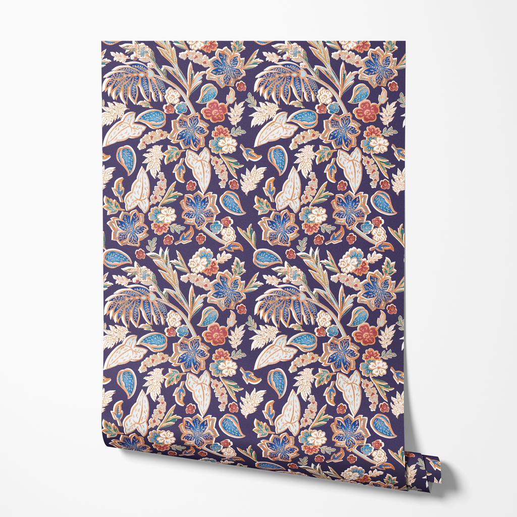 Vintage-inspired botanical foliage on a navy background perfect for creating a moody eclectic feel in any space.