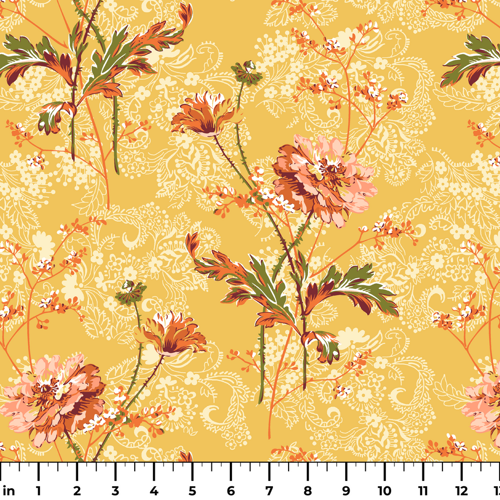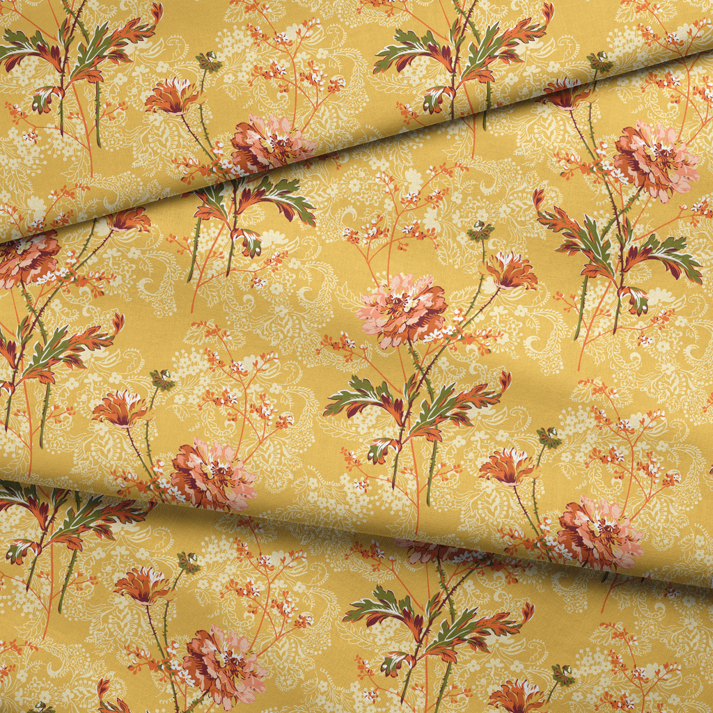 Paisley Blooms on Yellow Fabric