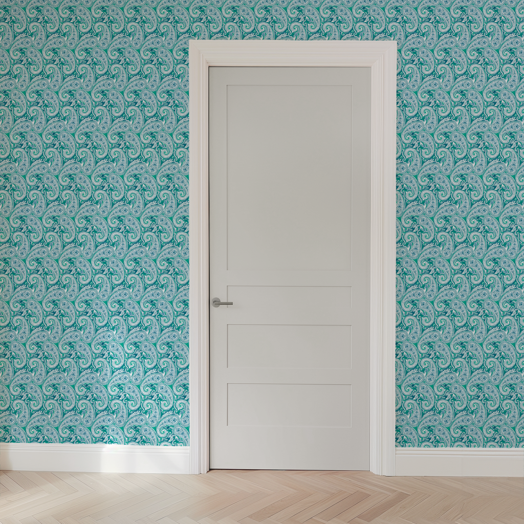 Paisley Swirl on Turquoise Wallpaper