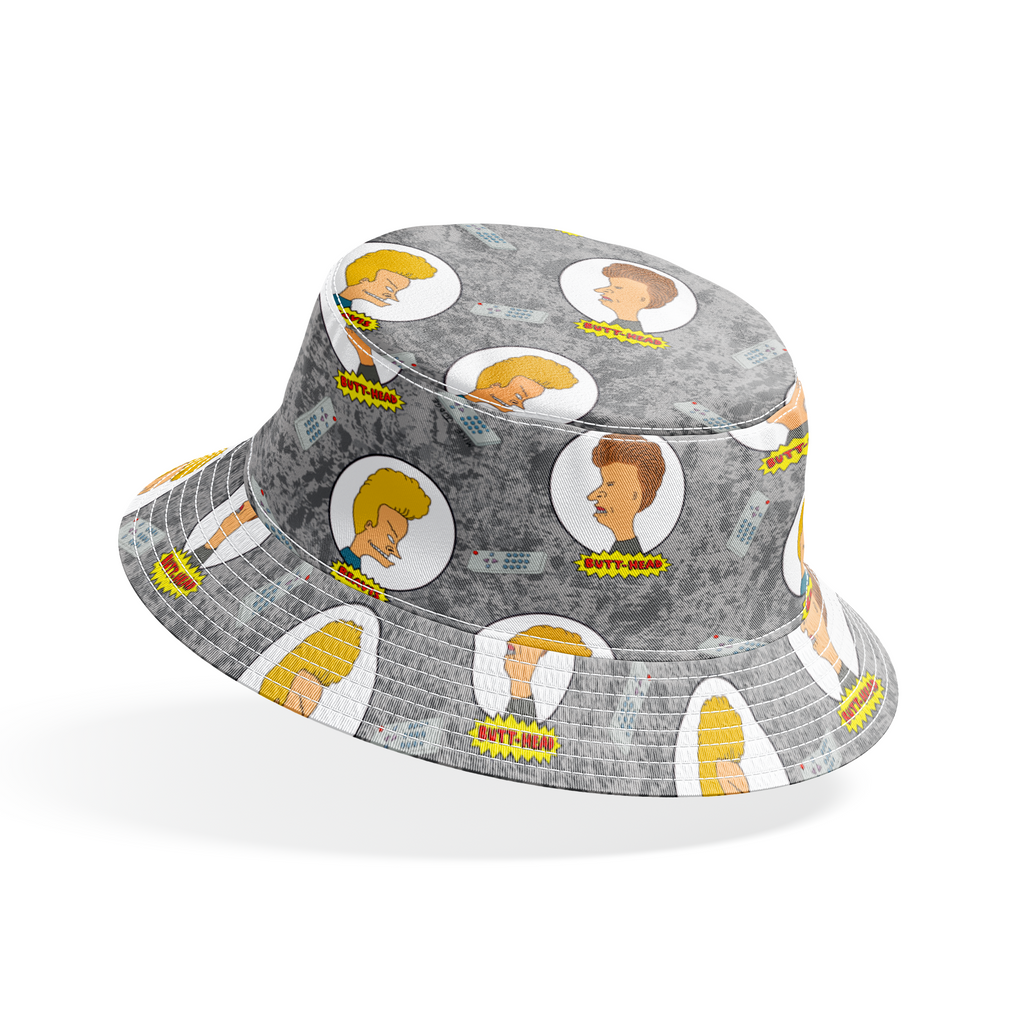 This retro cartoon pattern features two animated characters with distinctive hairstyles on a gray textured background, perfect for fans of 90s comedy animation and nostalgic pop culture apparel.