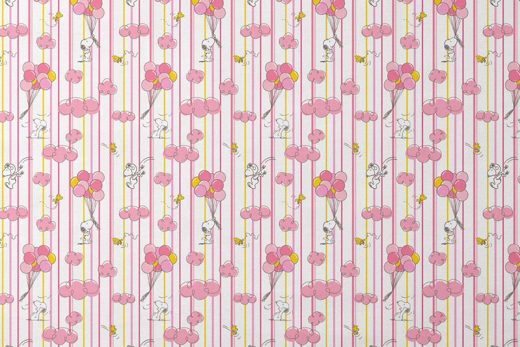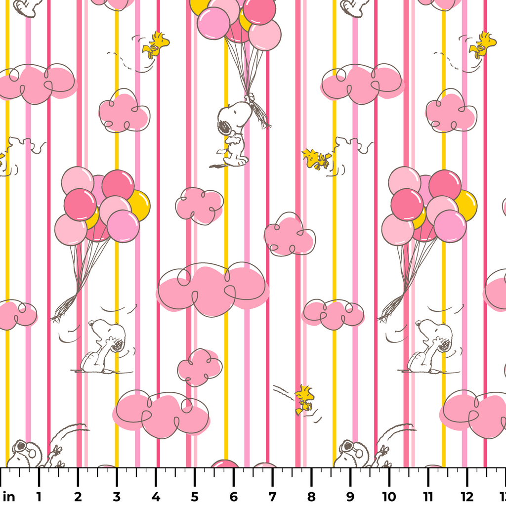 Peanuts Balloon Adventures on Pink Stripes Fabric