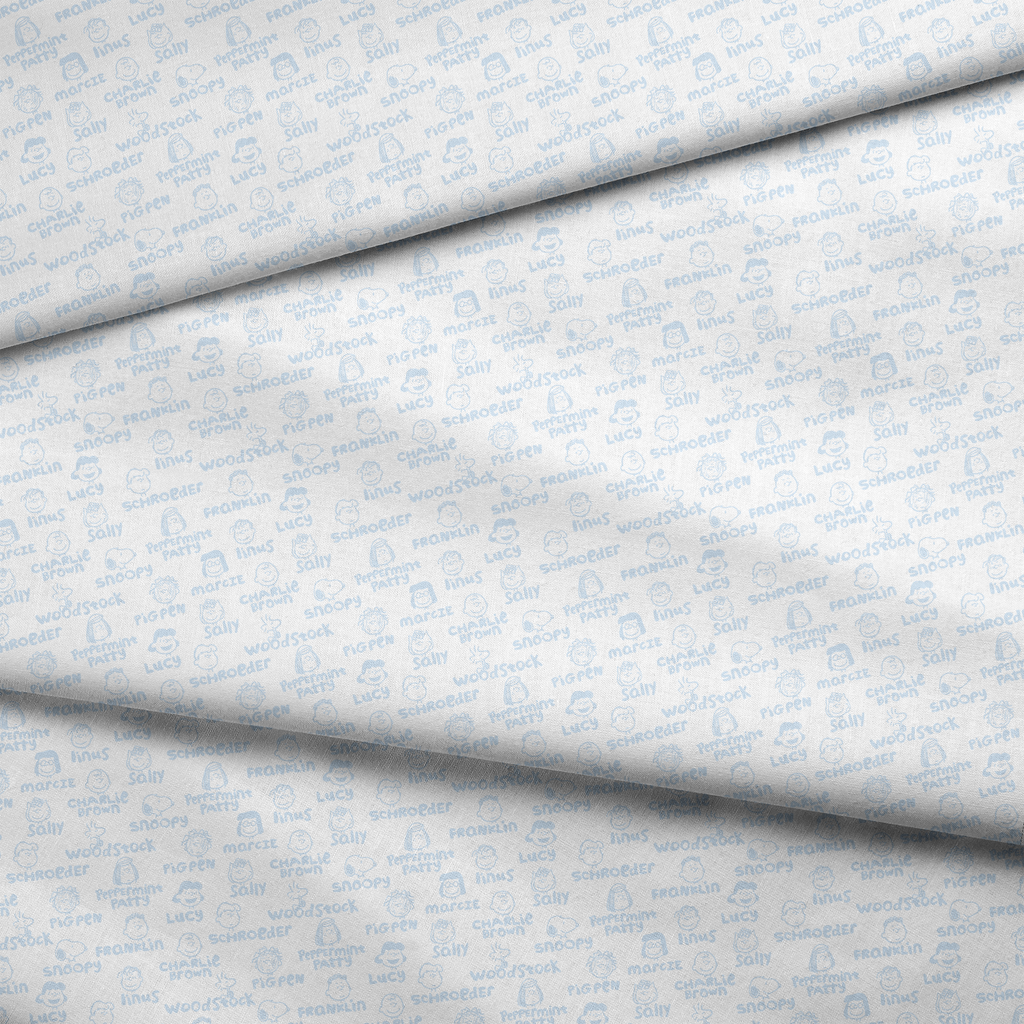 Peanuts Characters Name Toss on White Fabric
