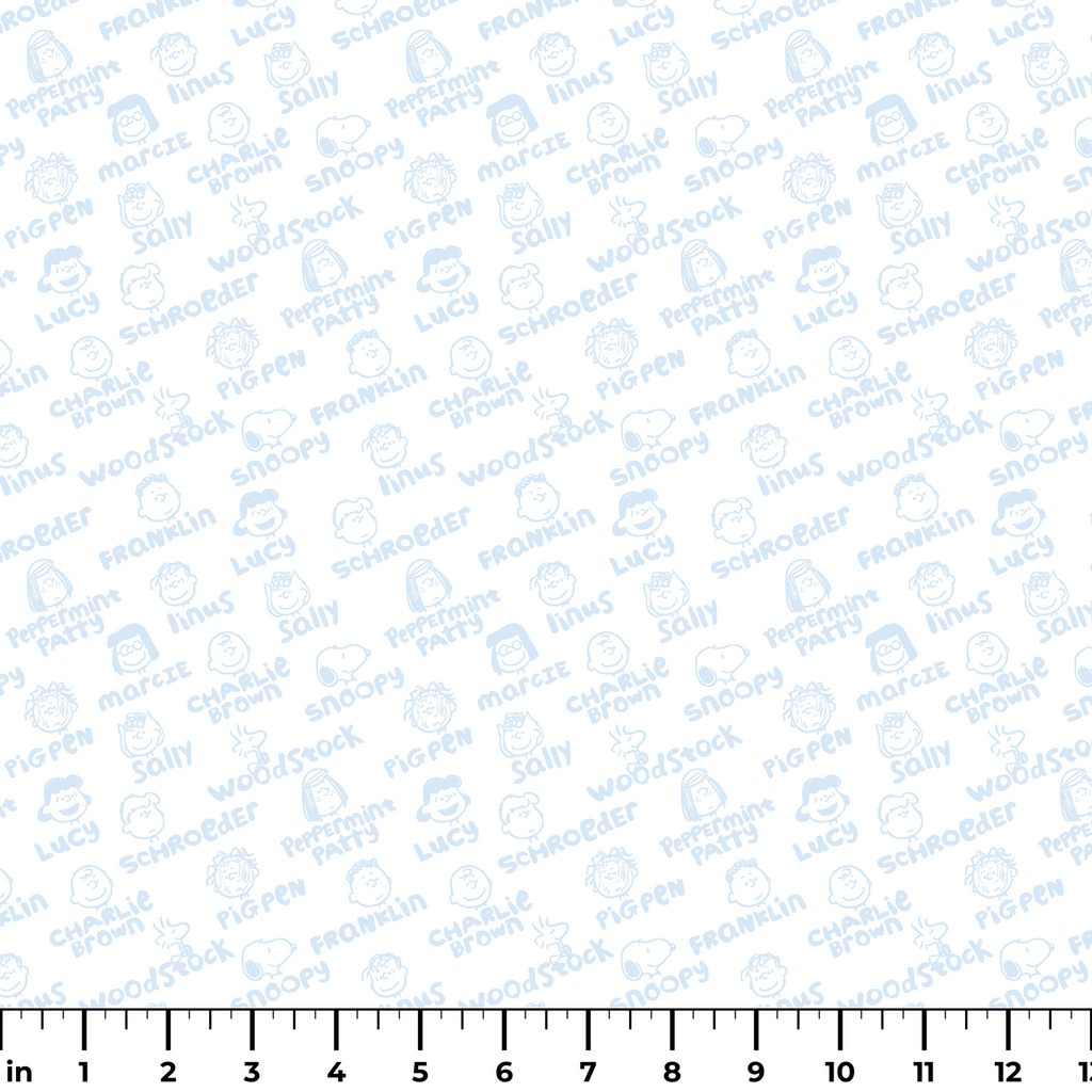 This adorable Peanuts pattern features Charlie Brown, Lucy, Linus, Snoopy and other beloved characters in a light blue toss. Perfect for fans of the classic comic strip.