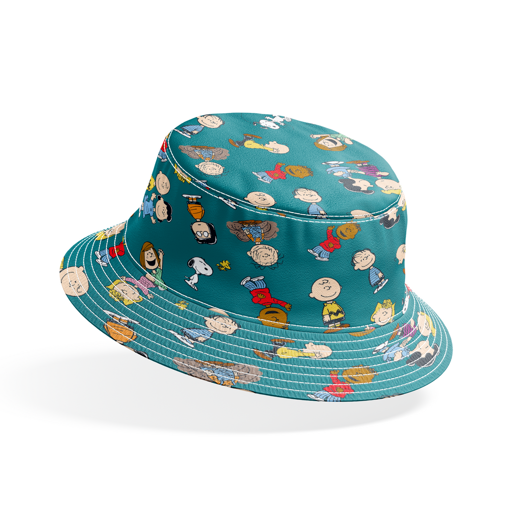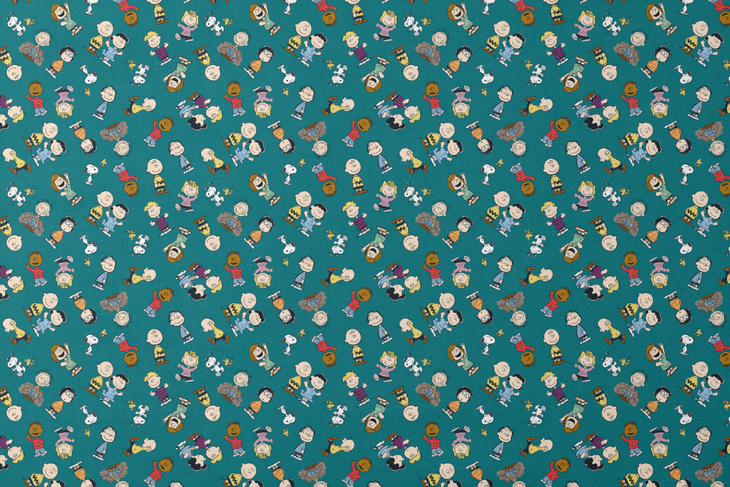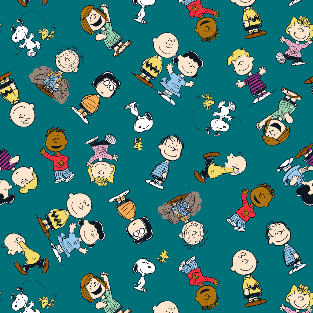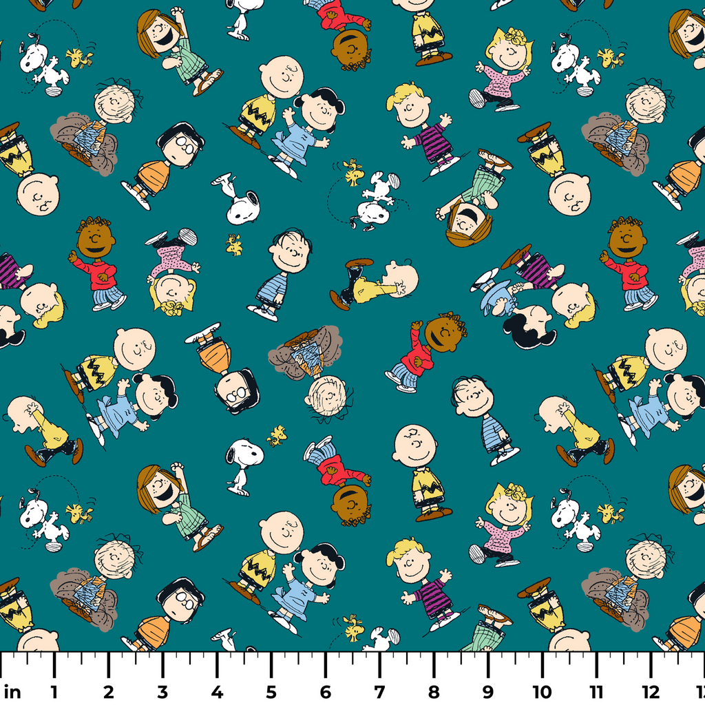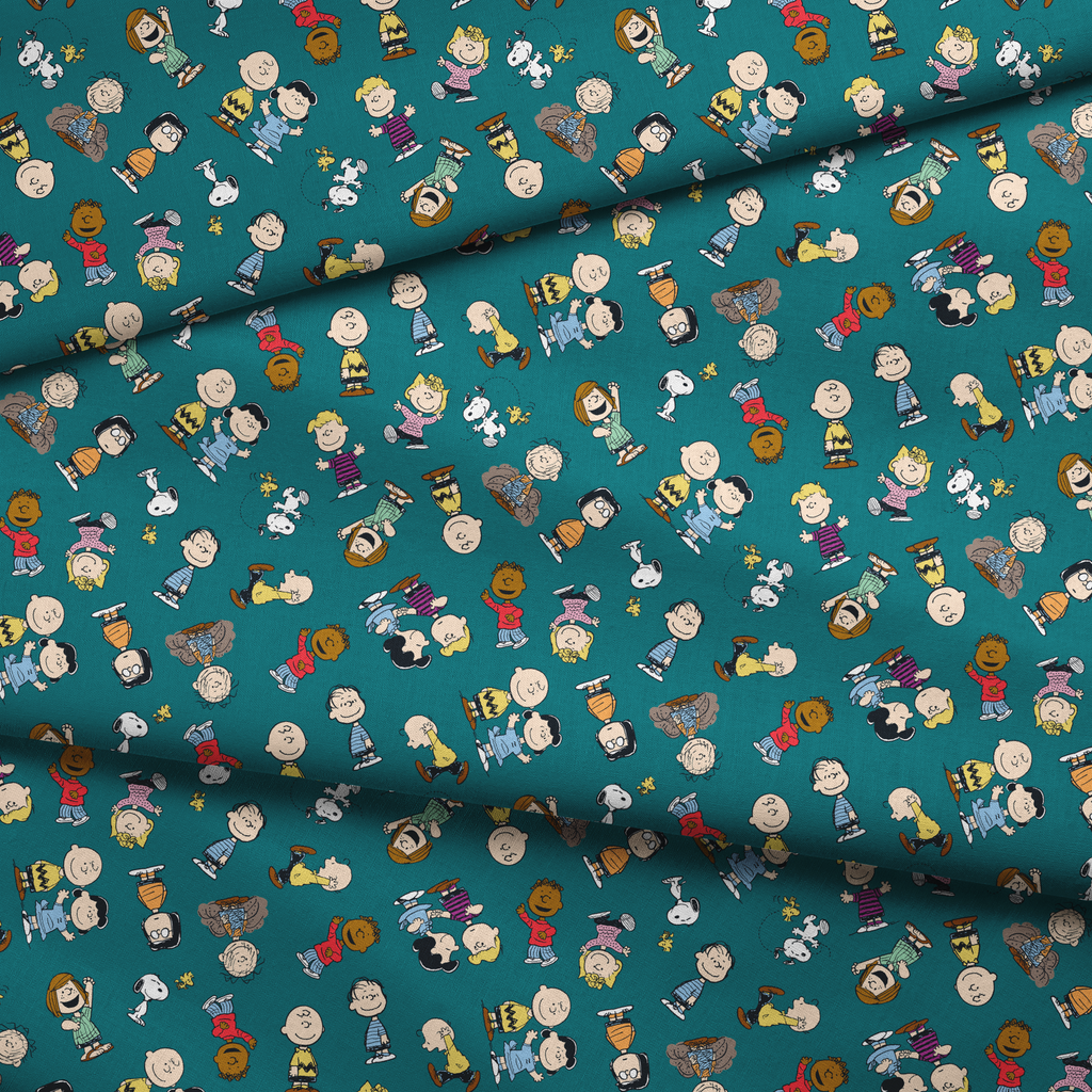 Peanuts Characters Toss on Teal Fabric