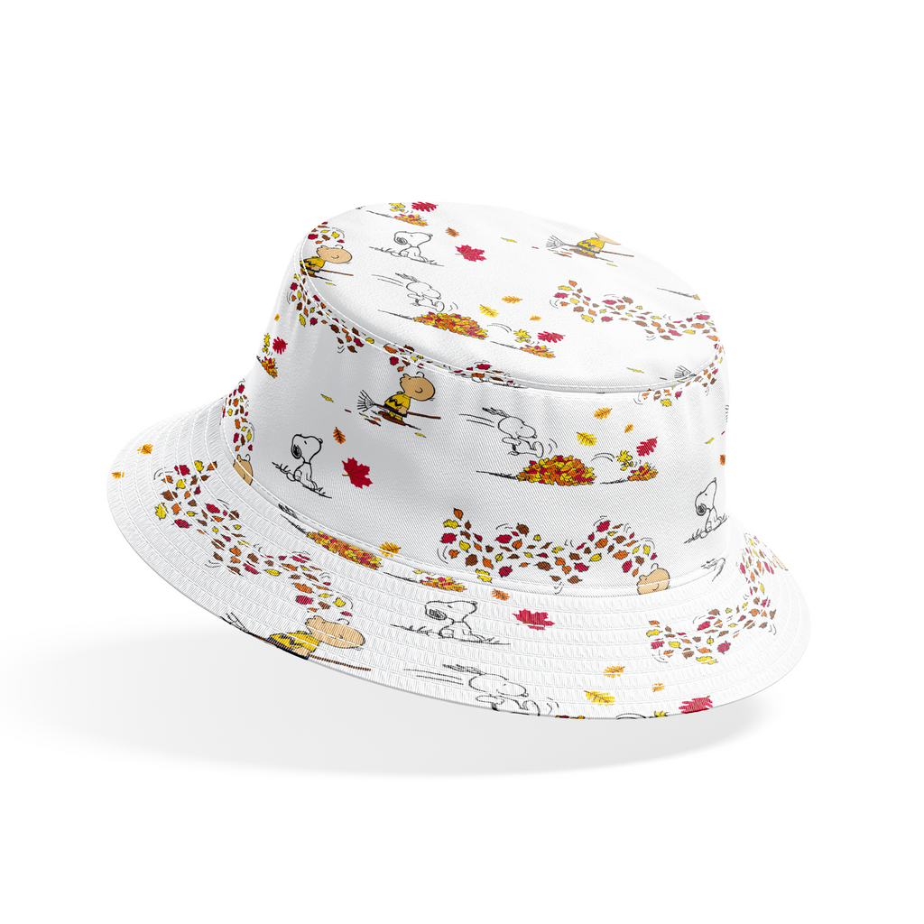 This adorable Peanuts autumn leaf toss features Charlie Brown and Snoopy enjoying fall activities with colorful leaves and leaf piles - perfect for seasonal decor or nostalgic fans.