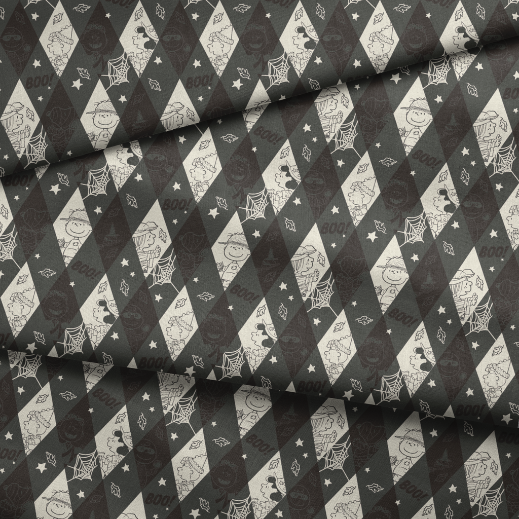 Peanuts Halloween Argyle Gray Diamond Fabric