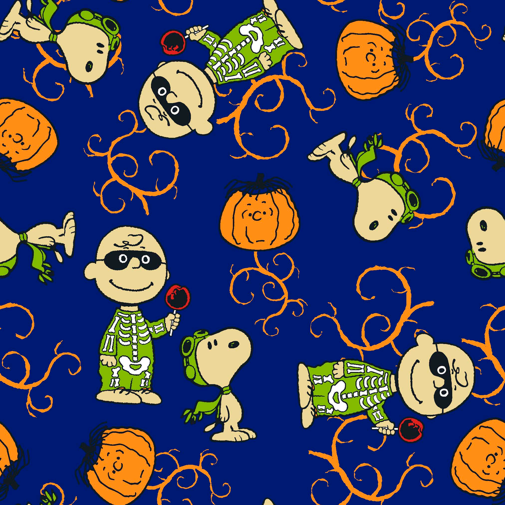 Peanuts Halloween Festive Characters on Blue Fabric