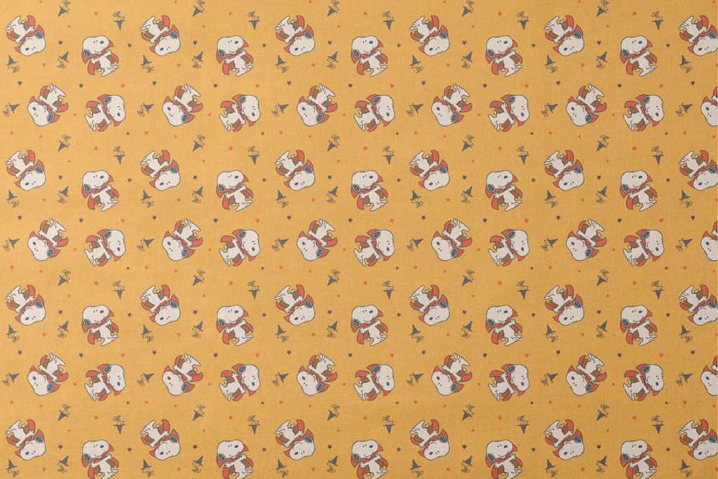 Peanuts Halloween Snoopy & Woodstock Costumes on Yellow Fabric