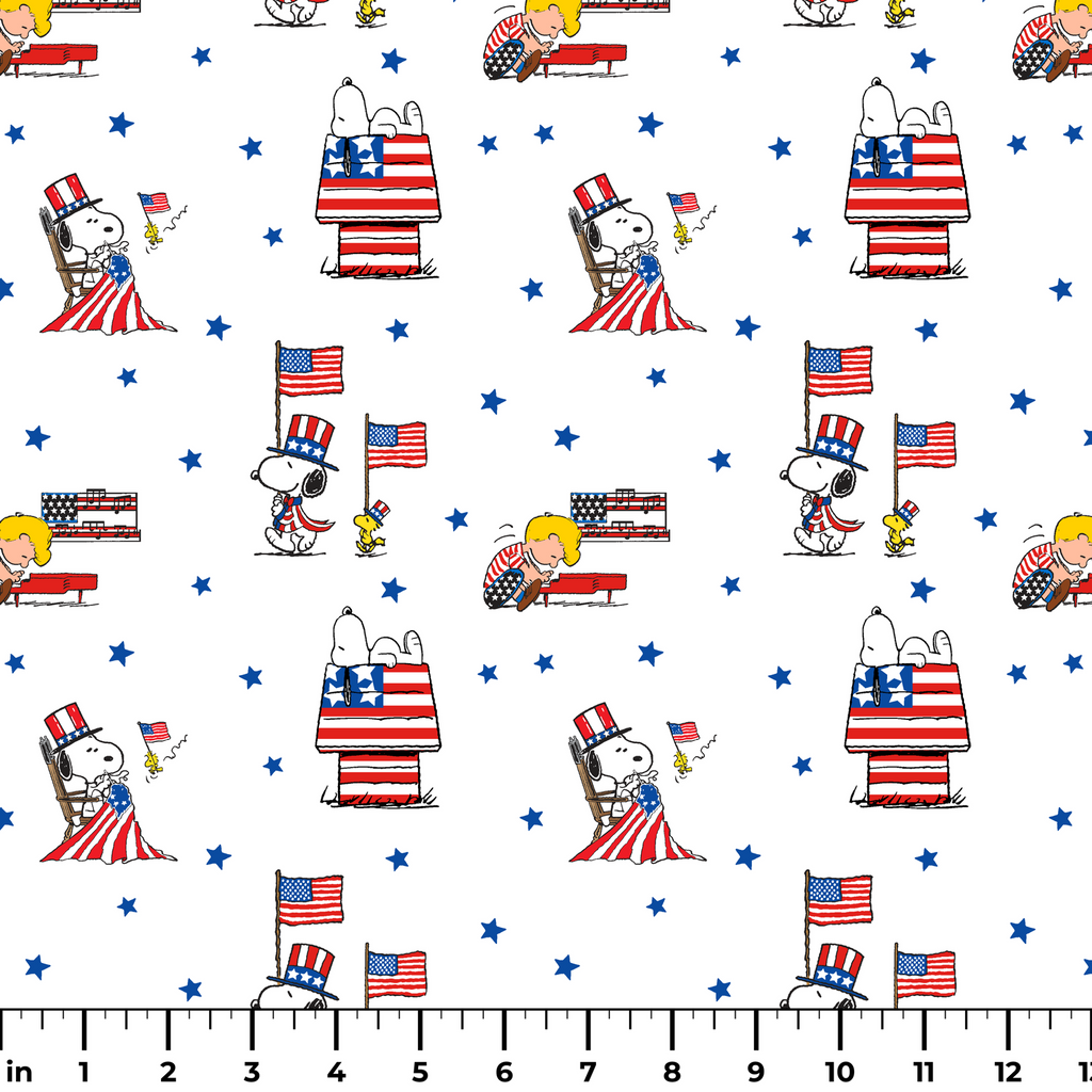 Peanuts Patriotic American Flag & Stars Fabric