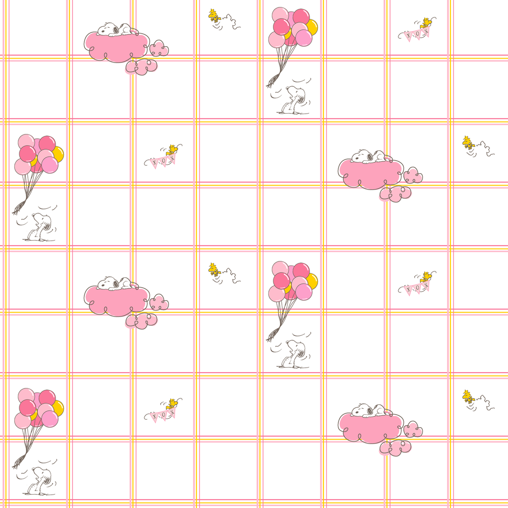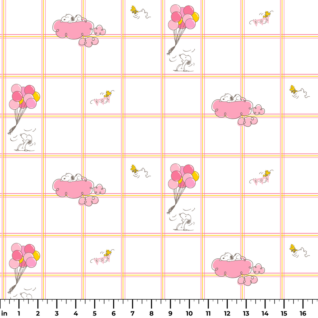 Peanuts Pink Balloon and Clouds Grid Toss Fabric