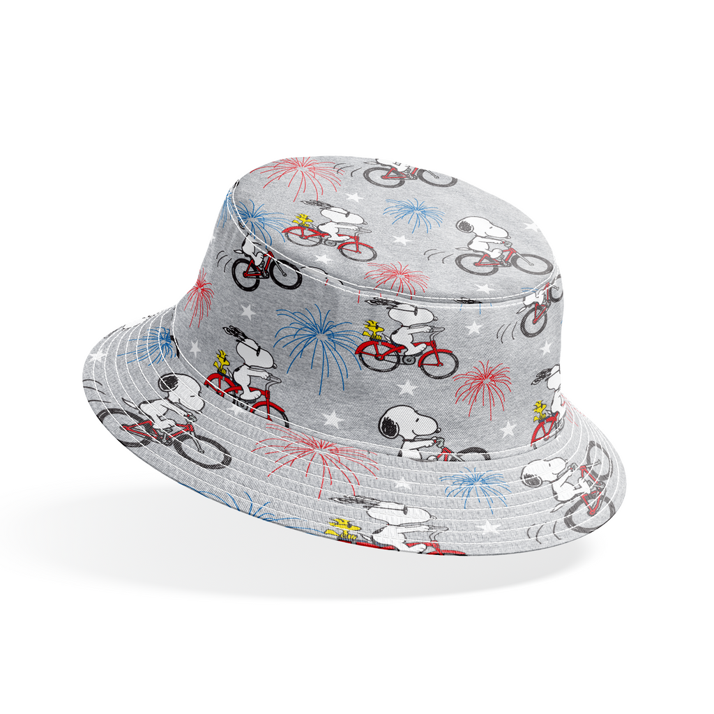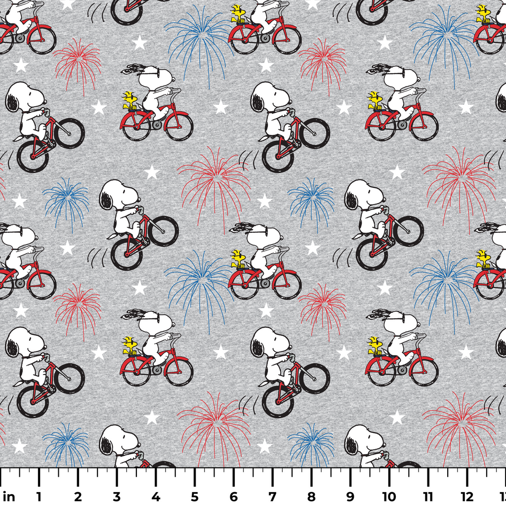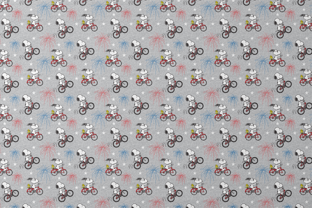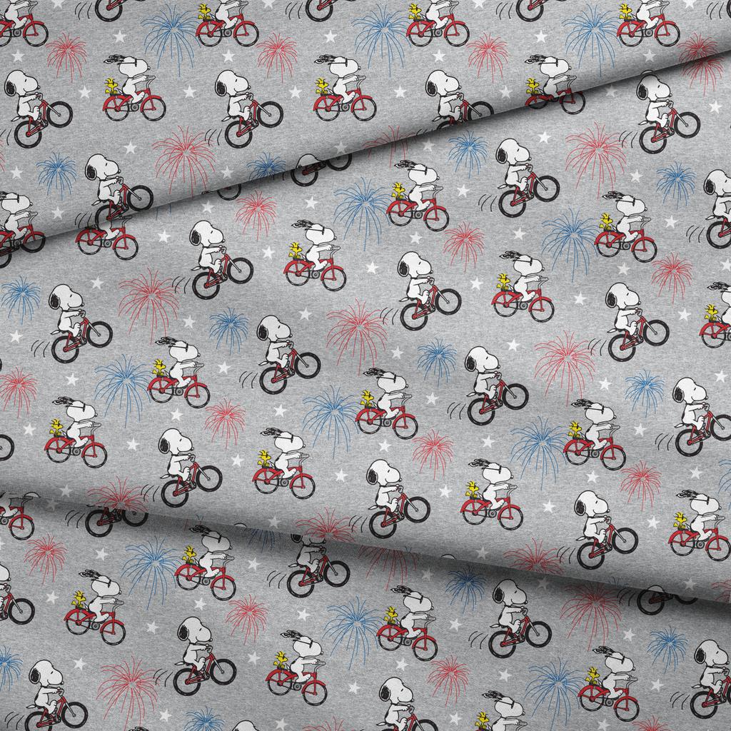 Peanuts Snoopy Bicycle Fireworks on Gray Fabric