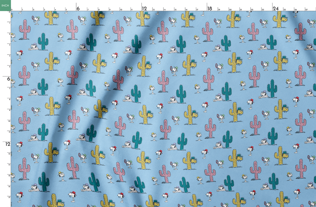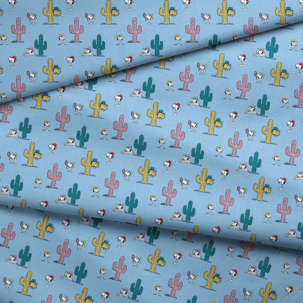 Peanuts Snoopy Cactus Desert on Blue Fabric