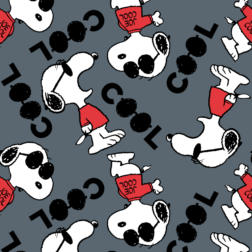 This fun Peanuts Snoopy pattern showcases the beloved character from Peanuts in playful poses, sunglasses and "Cool" tossed around. Perfect for fans of this beloved comic.