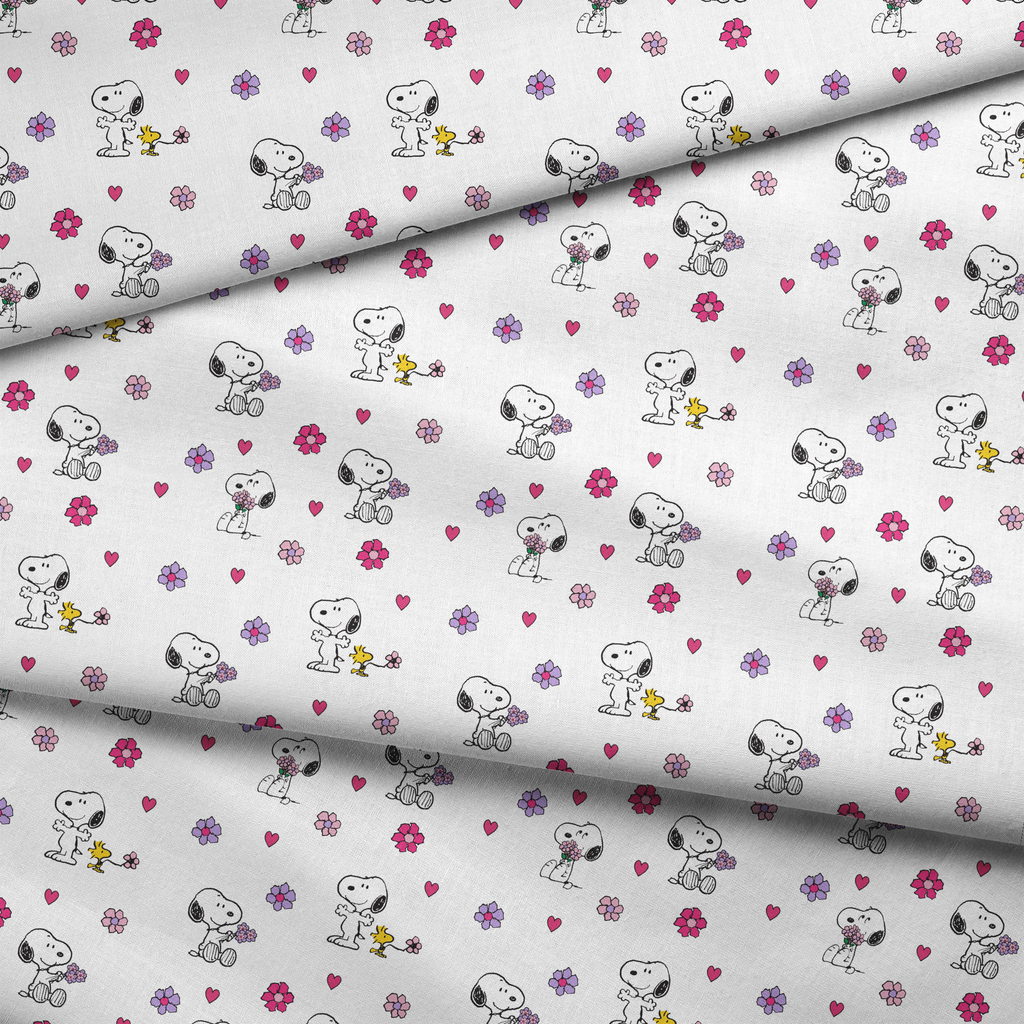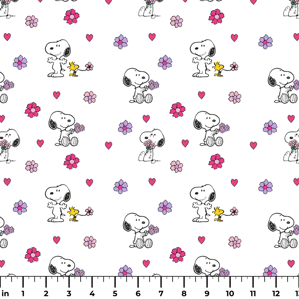 Peanuts Snoopy Floral Hearts Fabric